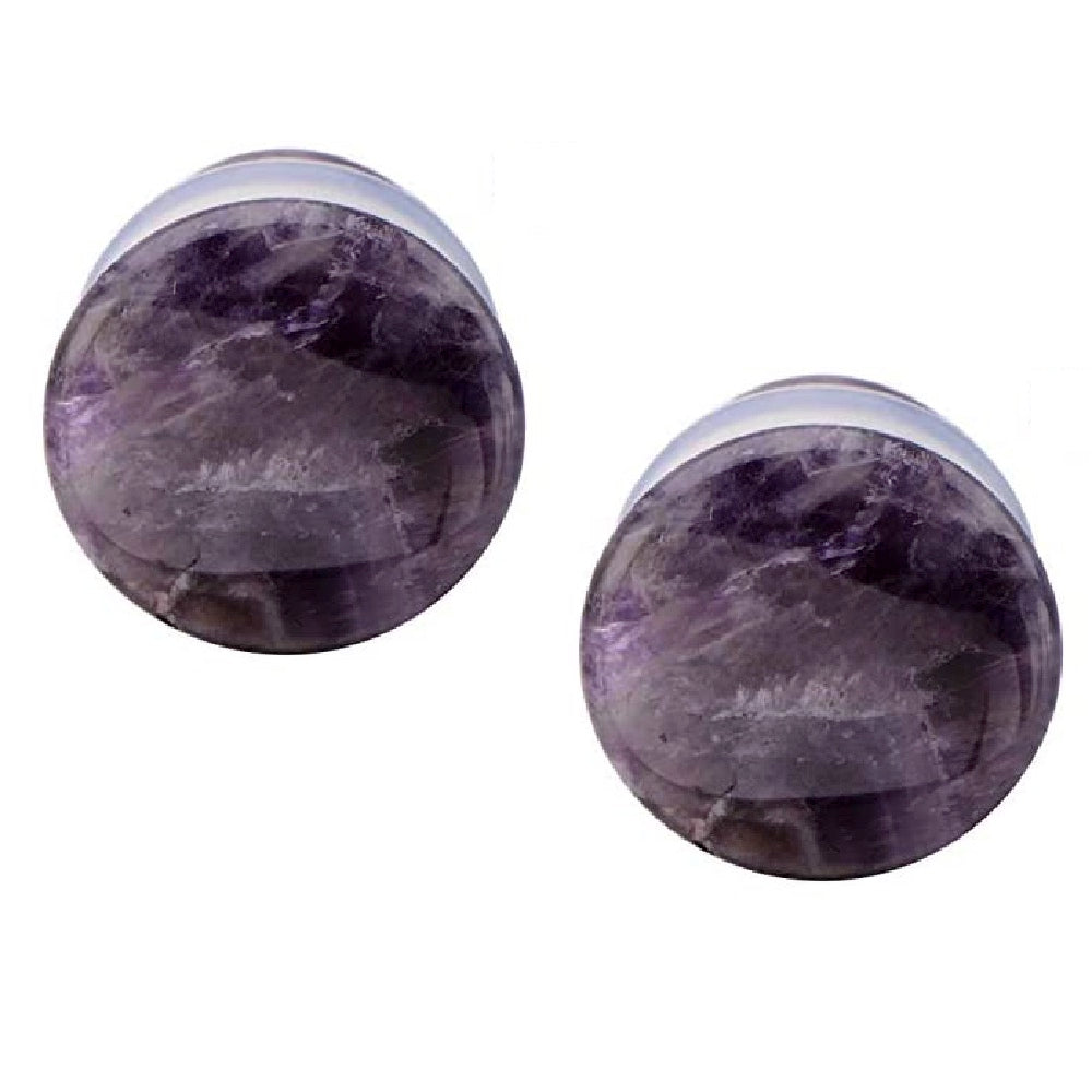 Amethyst Natural Stone Single Flare Plugs with Clear O-Rings