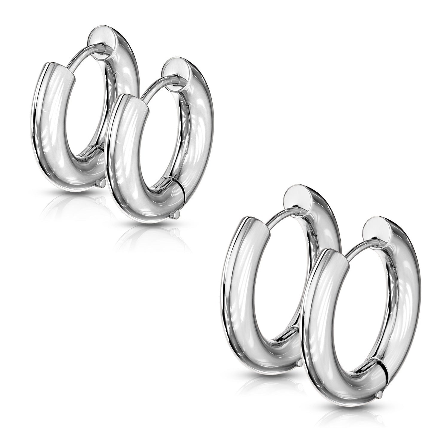 5mm Thick Round Hinged Hoop Earrings - 316L Stainless Steel