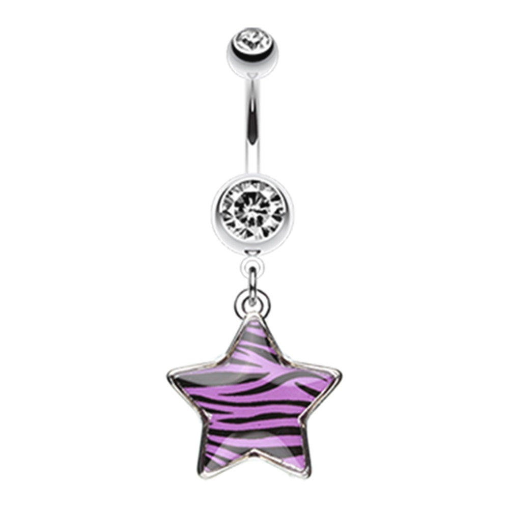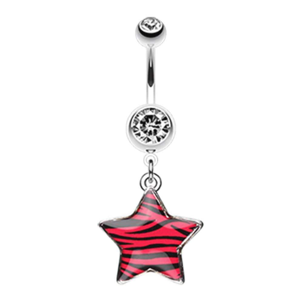 CZ Crystal Zebra Star Dangling Belly Button Ring - Stainless Steel