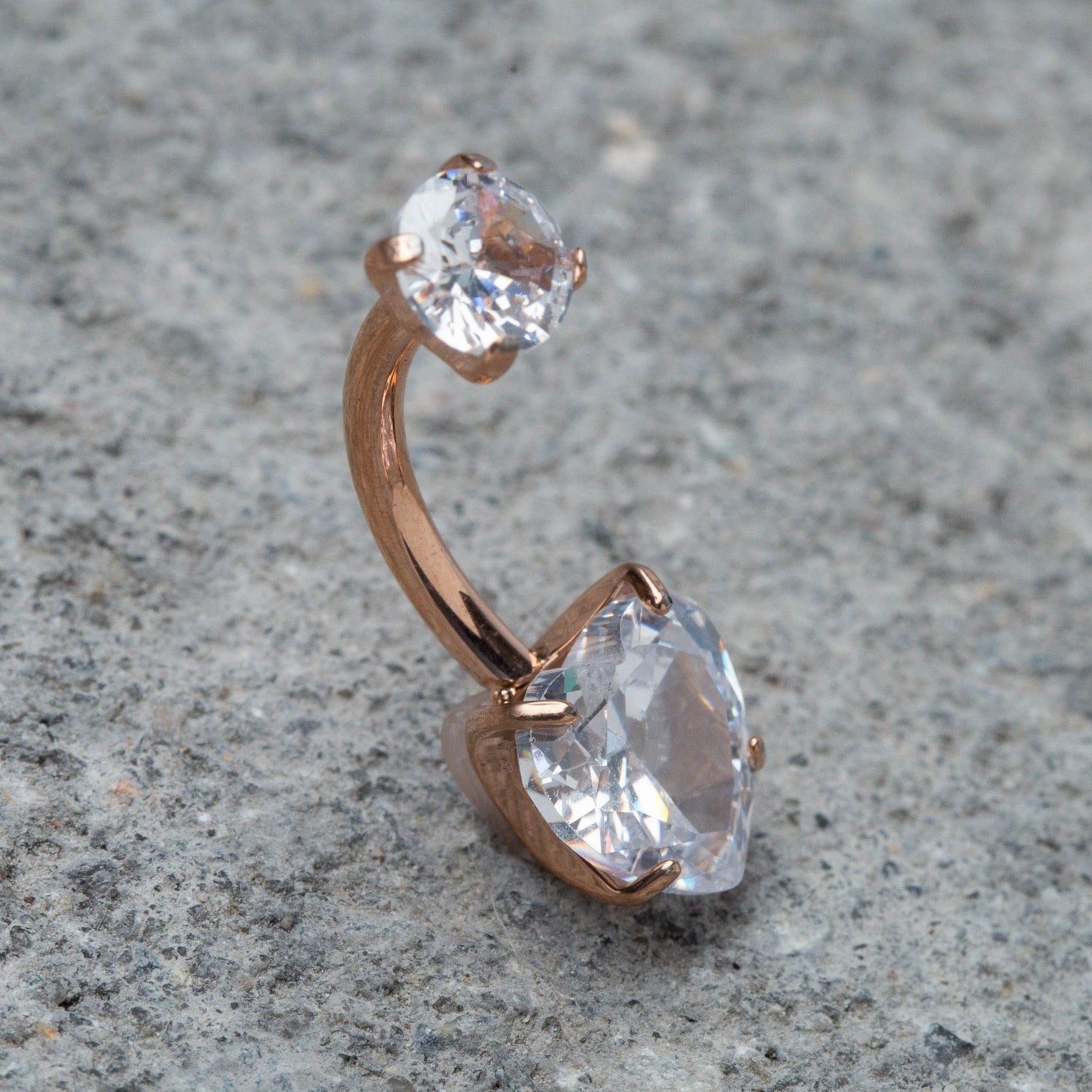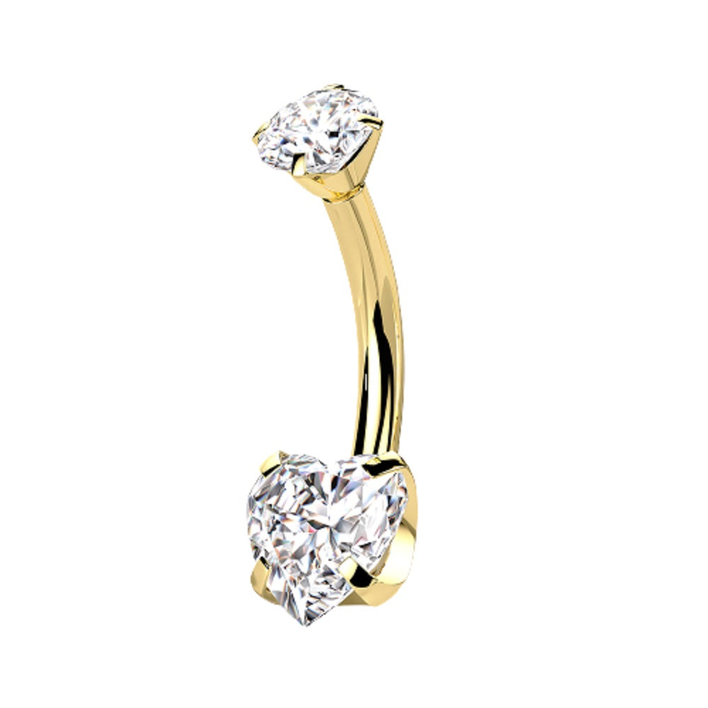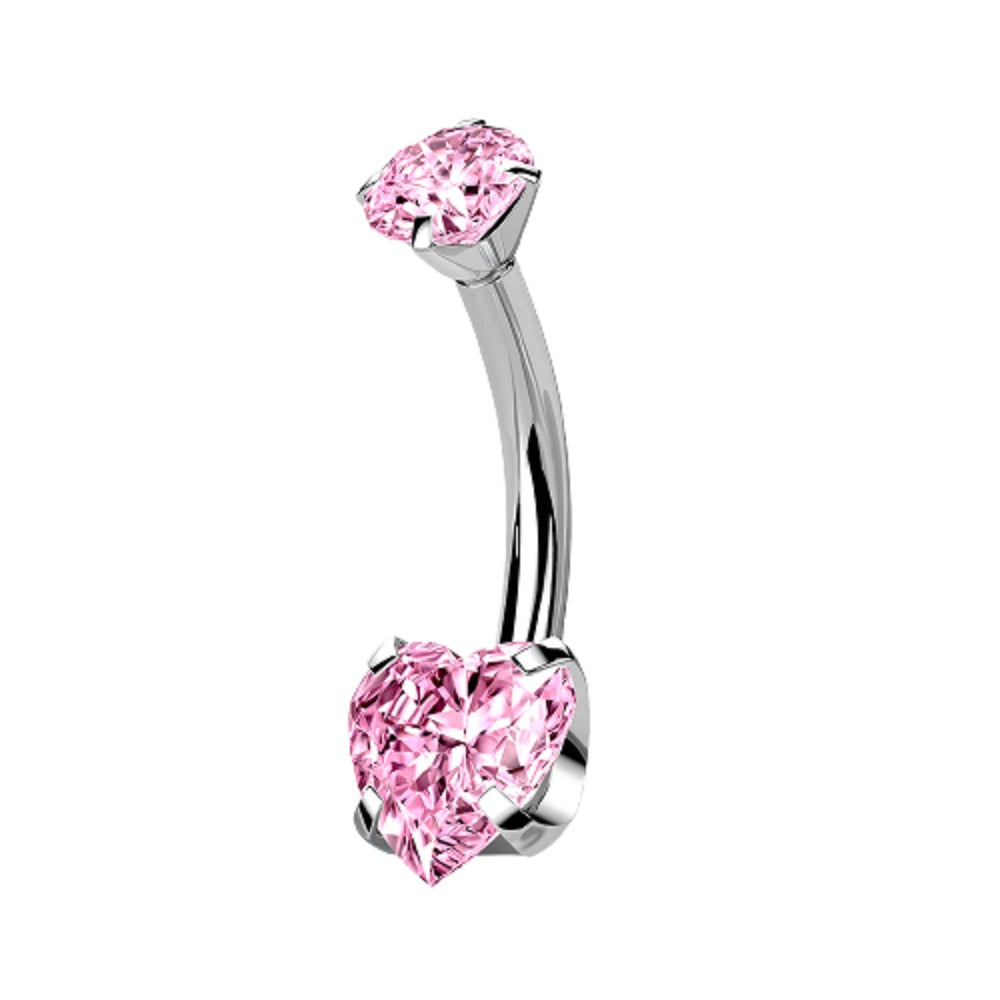 Prong Set CZ Crystal Heart Internally Threaded Belly Button Ring - G23 Implant Grade Titanium