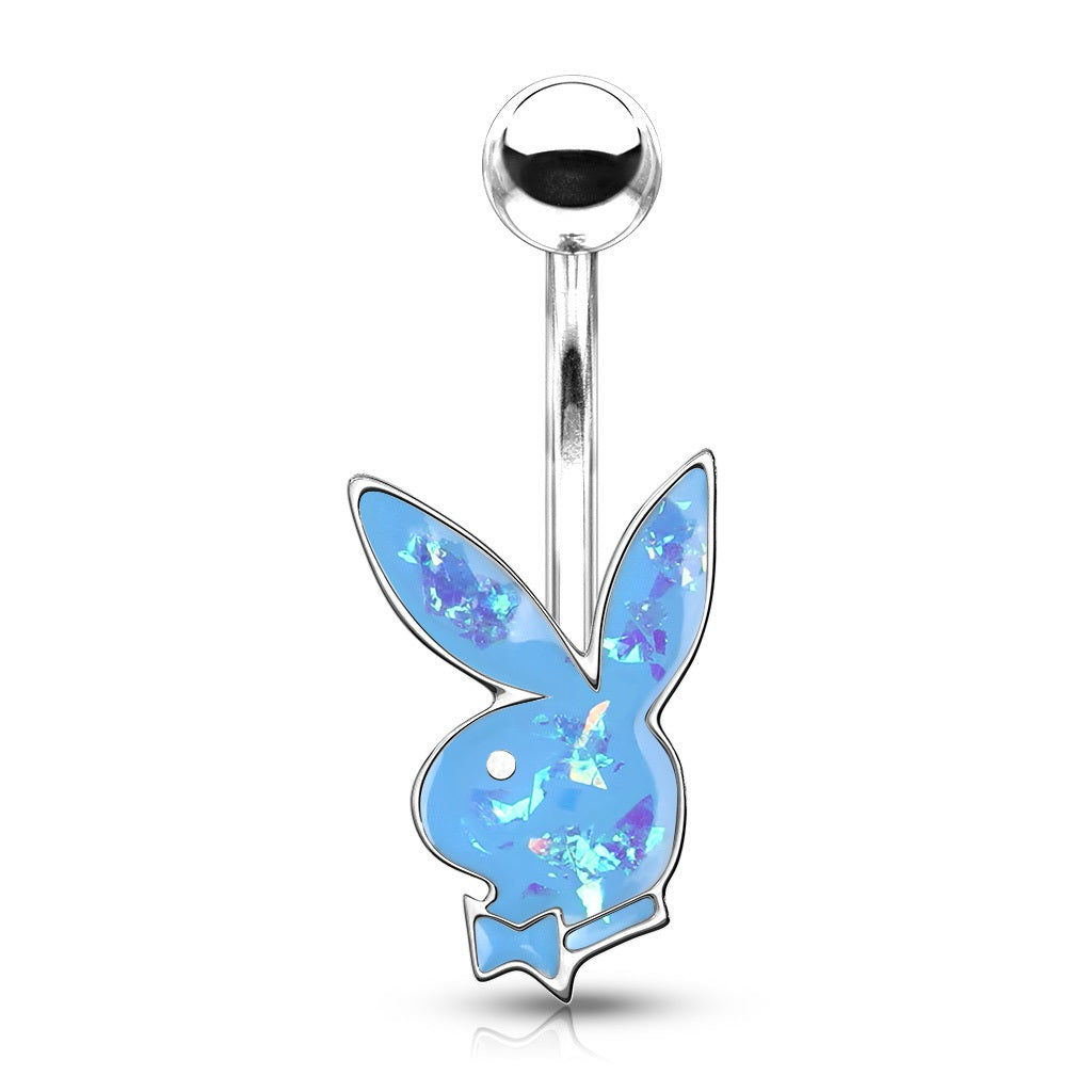 Playboy Bunny Synthetic Opal Glitter Belly Button Ring