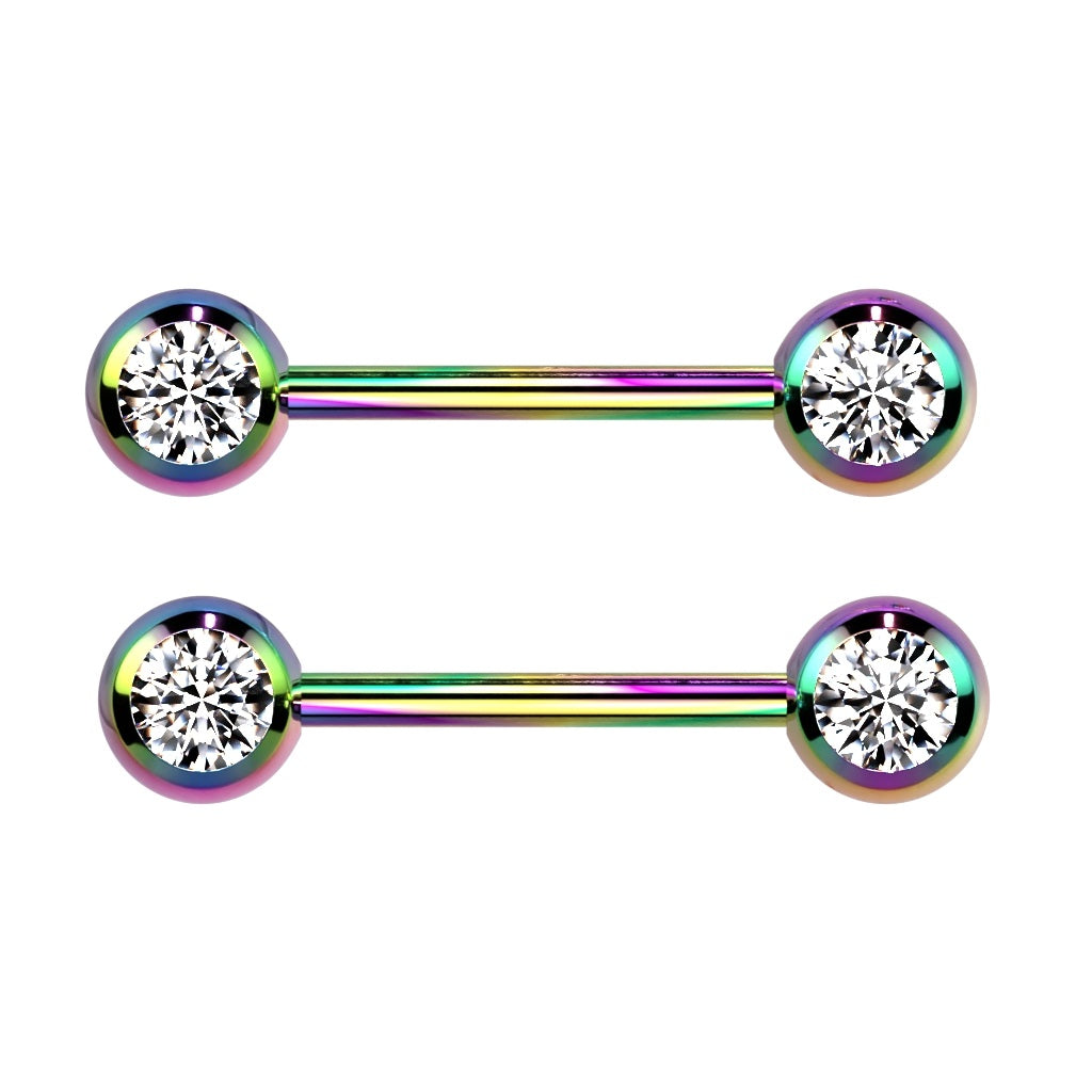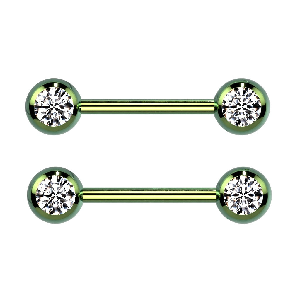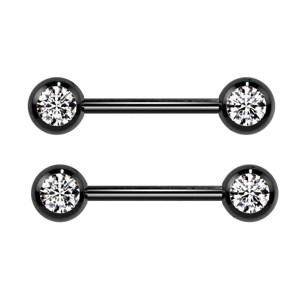Double CZ Crystal Nipple Barbells - Titanium Plated 316L Stainless Steel - Pair