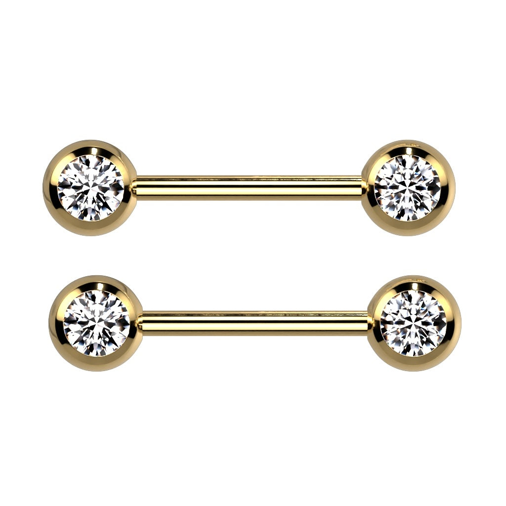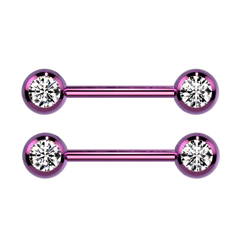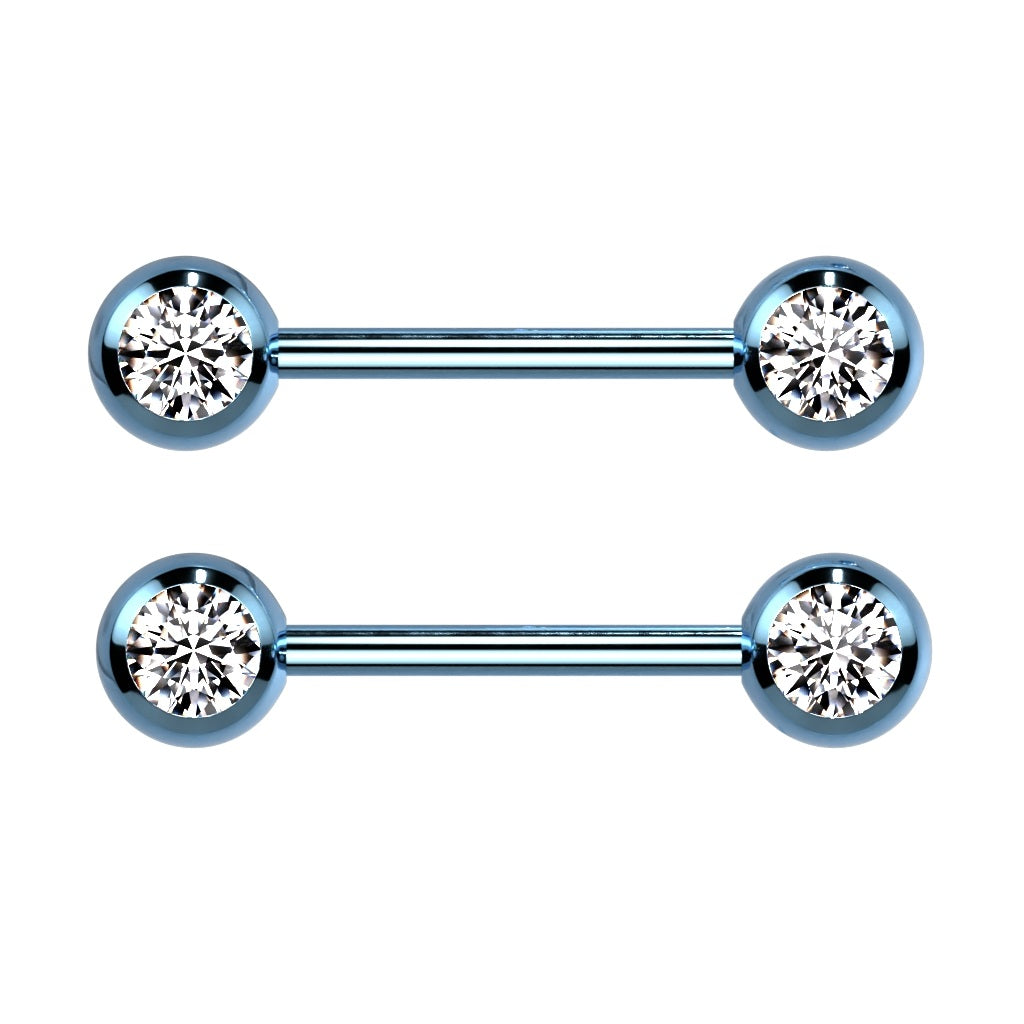 Double CZ Crystal Nipple Barbells - Titanium Plated 316L Stainless Steel - Pair