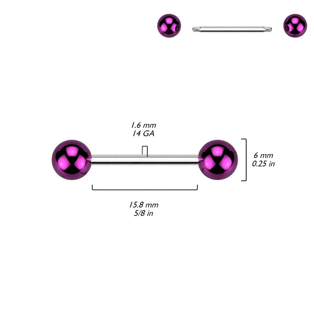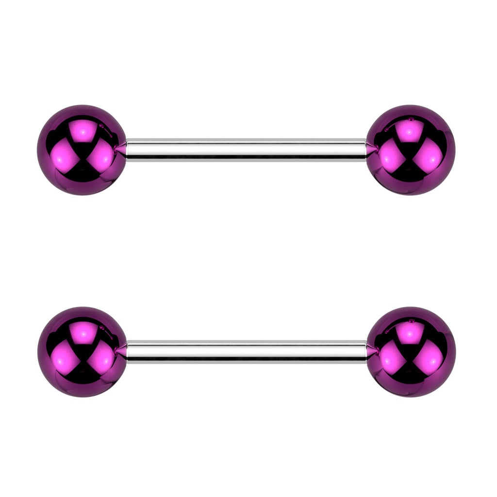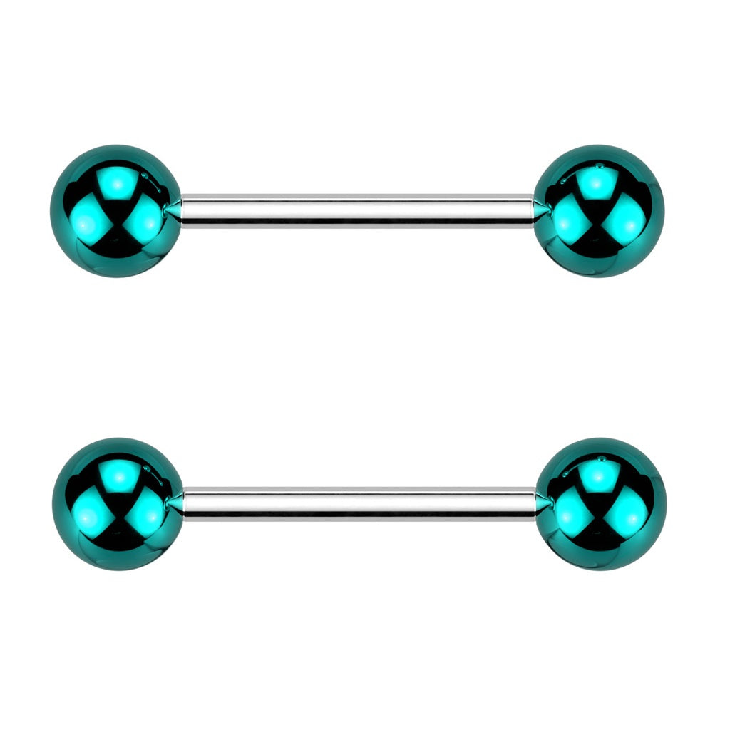 Glass Coated Acrylic Ball Ends Nipple Barbells - Pair - 316L Stainless Steel