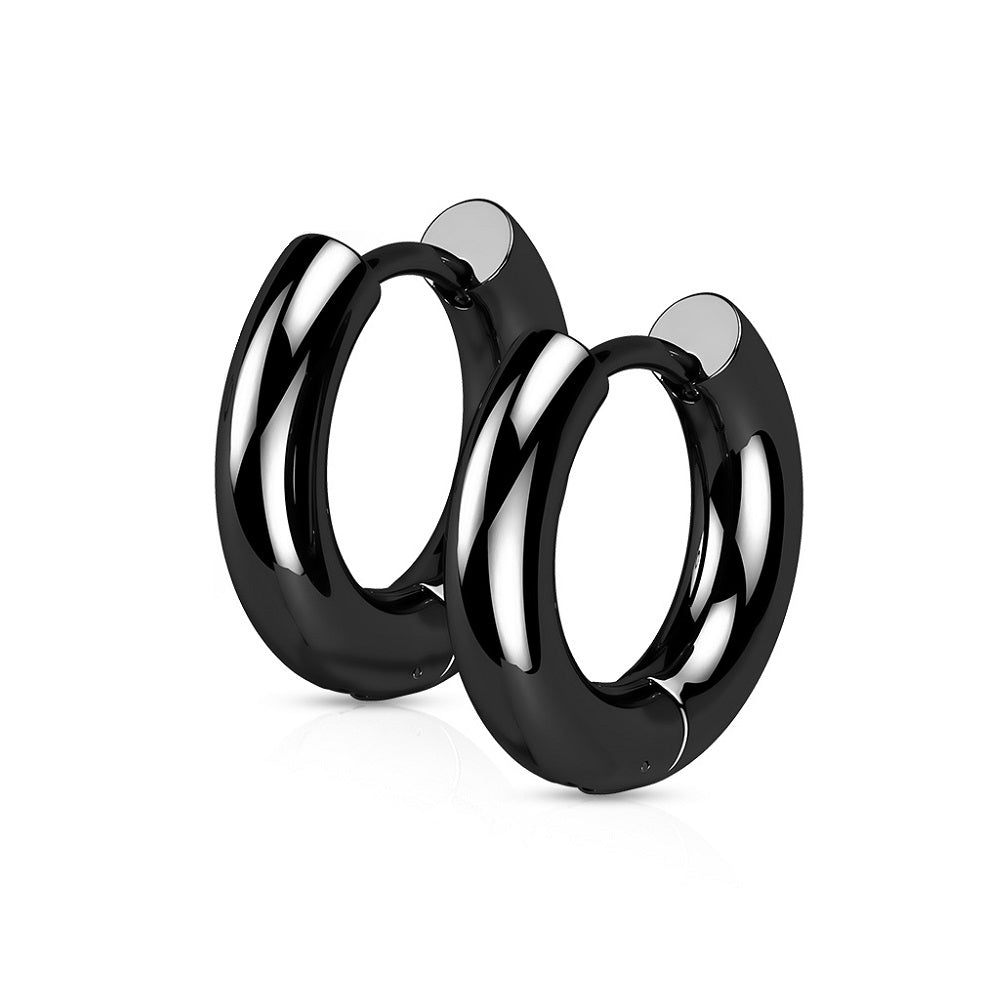 3mm Thick Hinged Round Hoop Earrings - 316L Stainless Steel - Pair