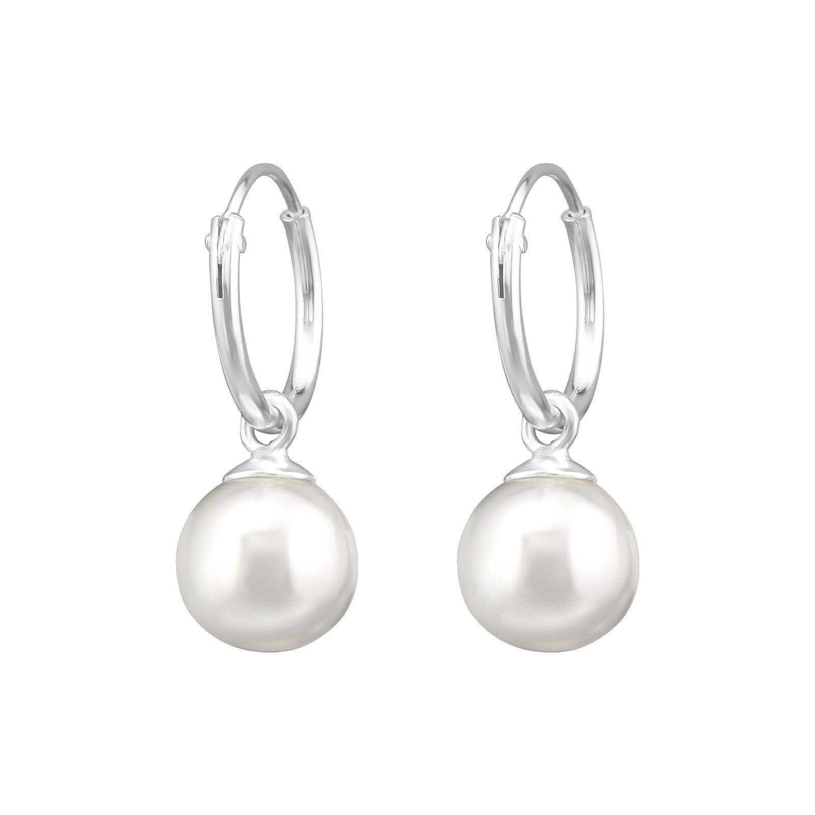 Dangling Faux Pearl 12mm Hoop Earrings - Pair - 925 Sterling Silver
