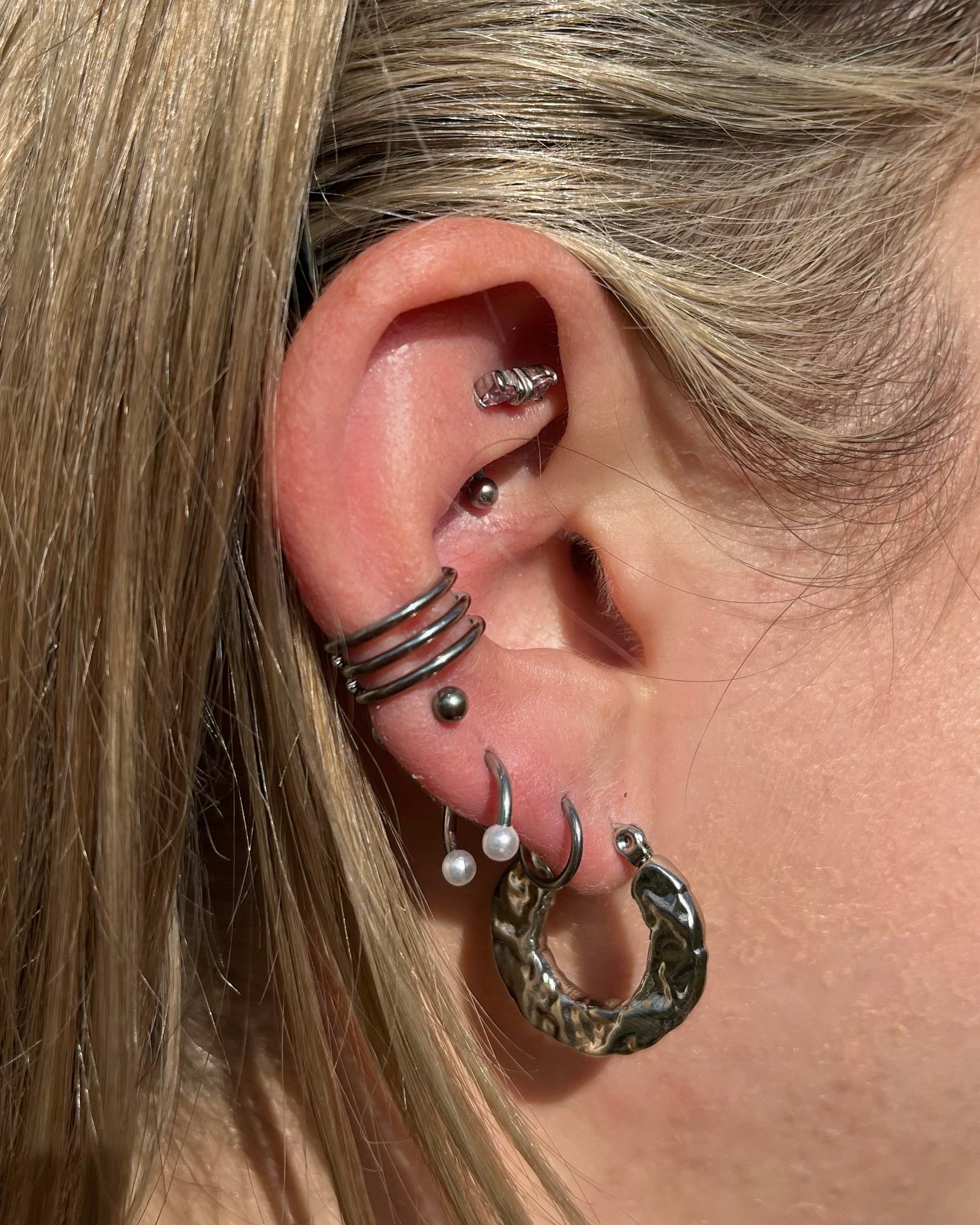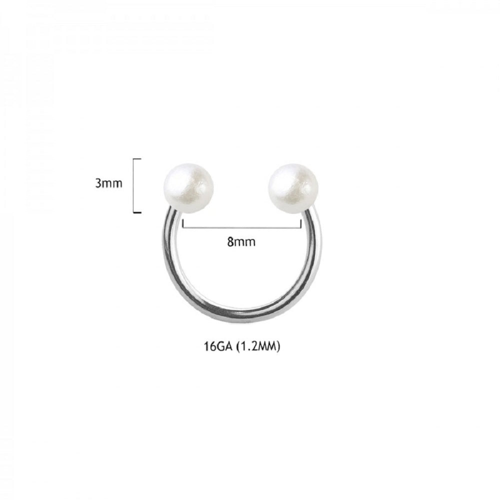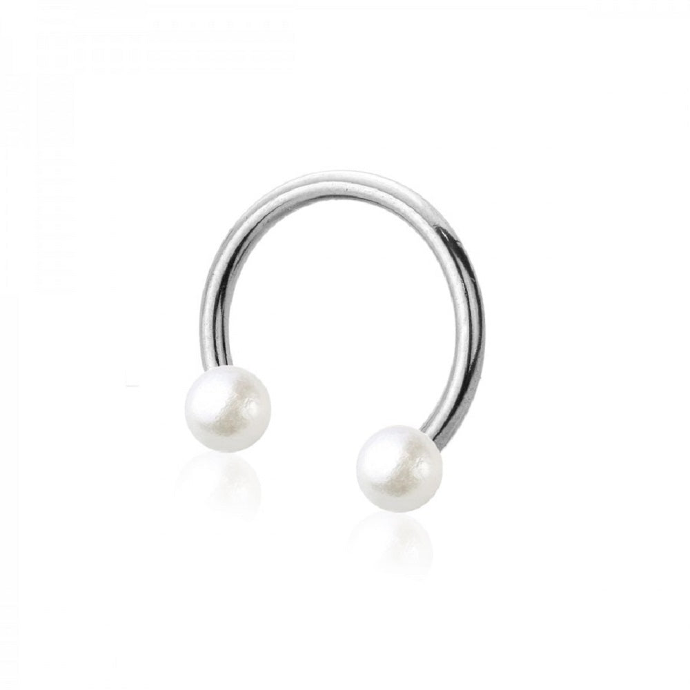 Faux Pearl Ball Ends Horseshoe Circular Barbell - 316L Stainless Steel