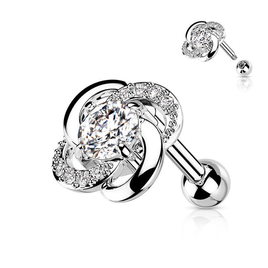 CZ Crystal Paved Twisted Flower Barbell - 316L Stainless Steel