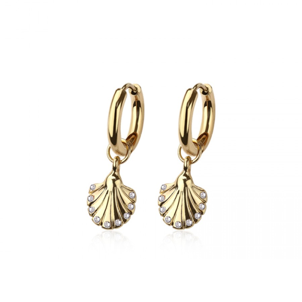 CZ Crystal Seashell Dangling Huggie Hoop Earrings - Pair - 316L Stainless Steel