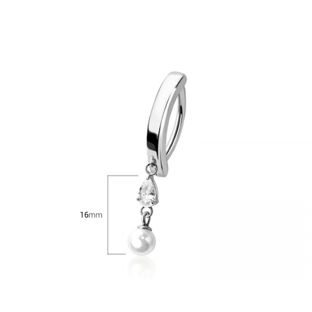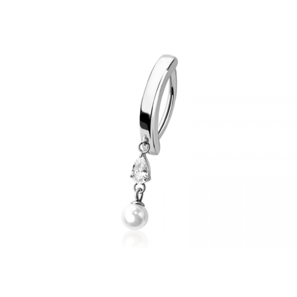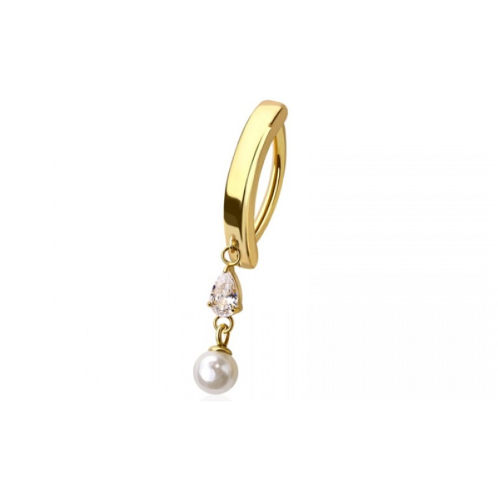 Dangling CZ Crystal Teardrop with Faux Pearl Hinged Curved Bar Clicker Belly Button Ring - 316L Stainless Steel