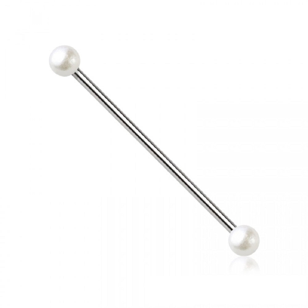 Faux Pearl Ball Ends Industrial Barbell - 316L Stainless Steel