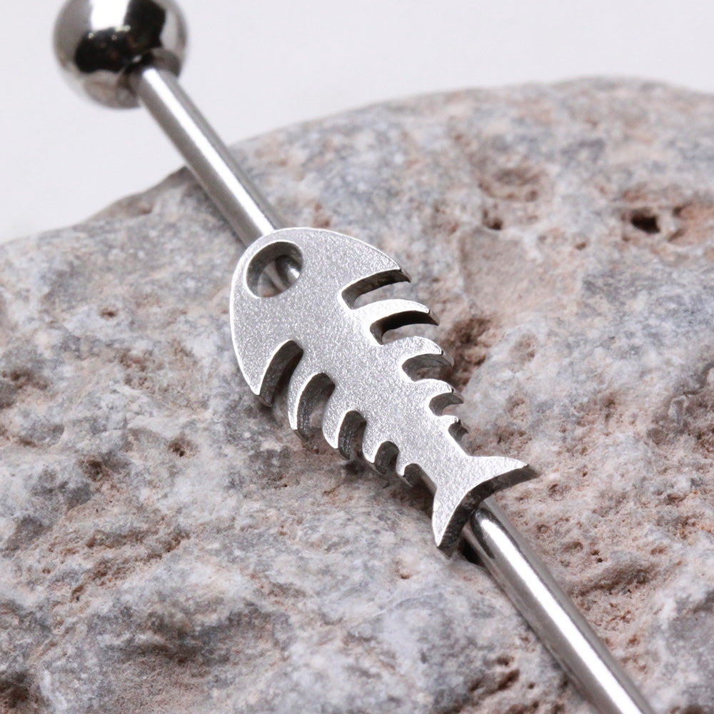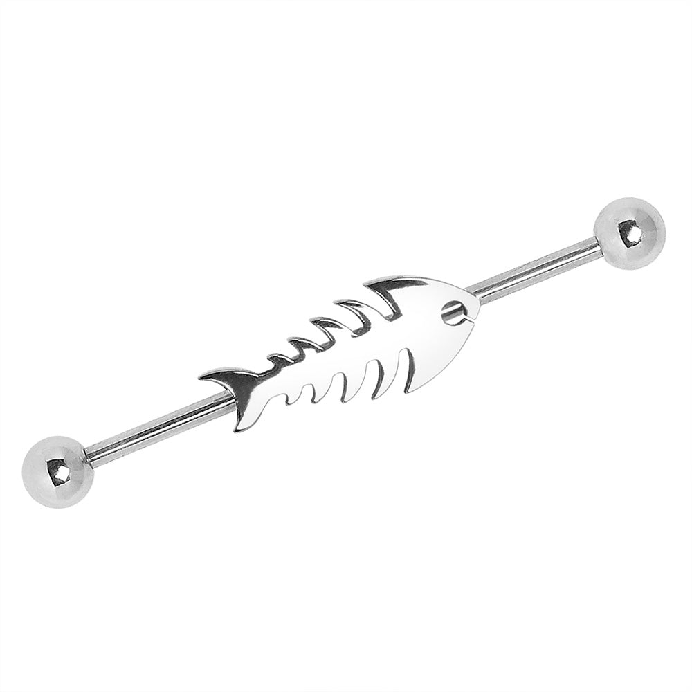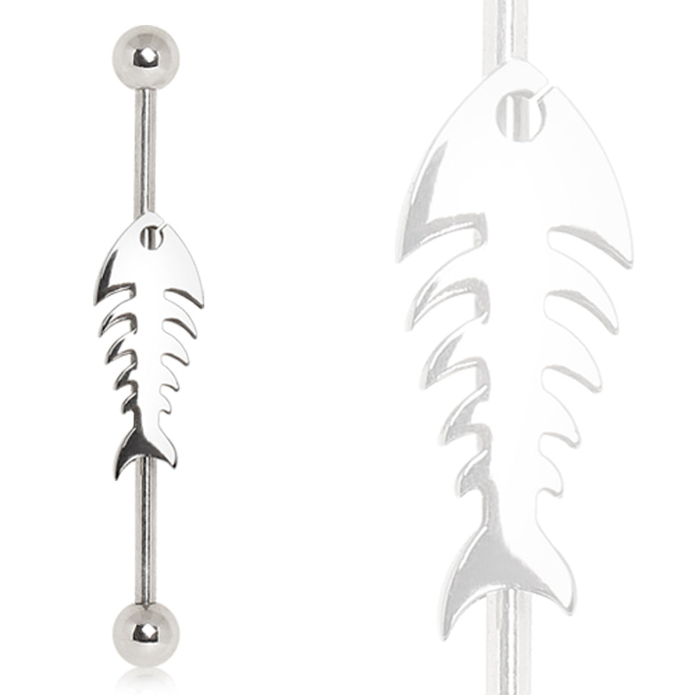 Fish Bone Industrial Barbell - 316L Stainless Steel