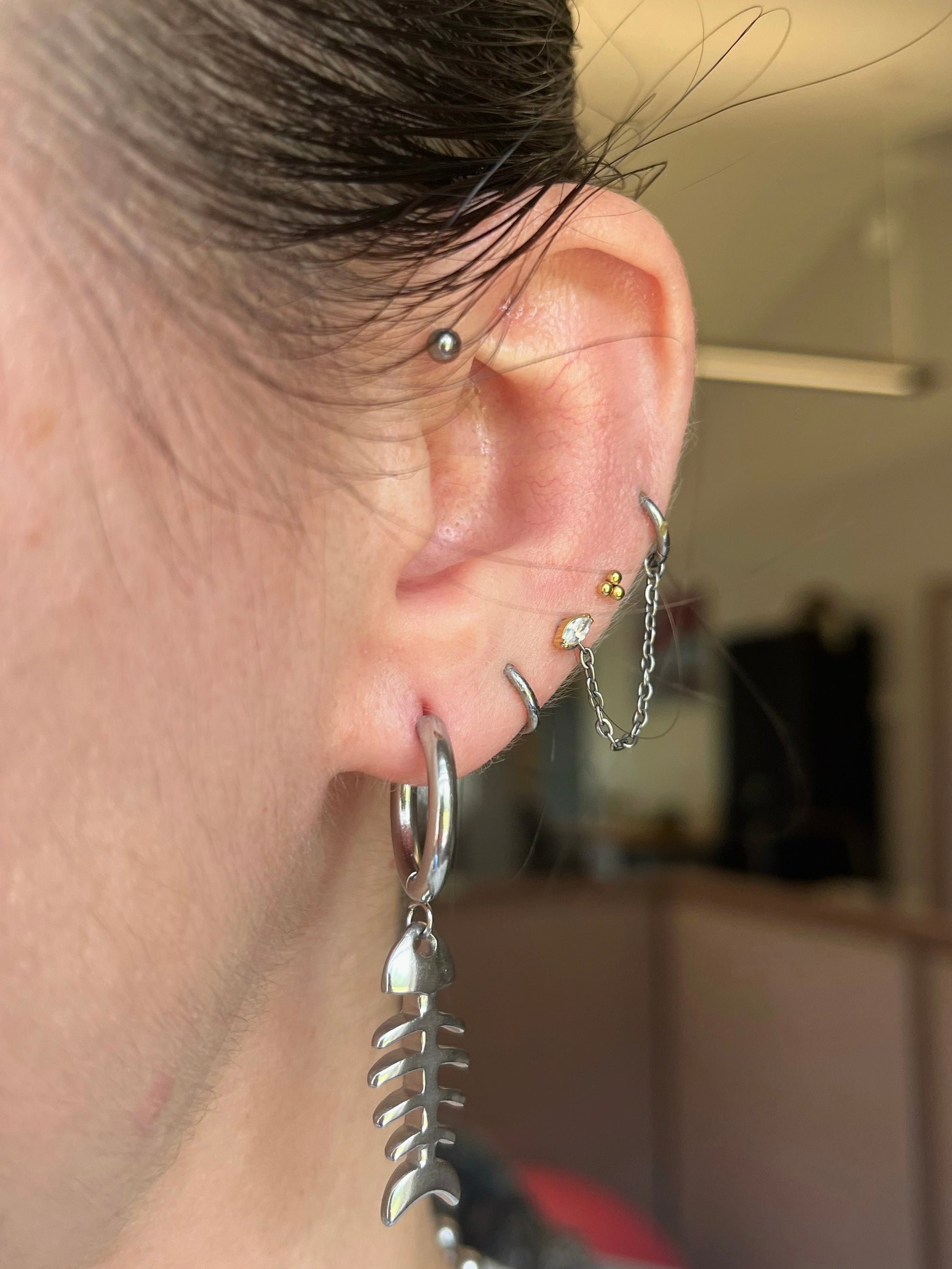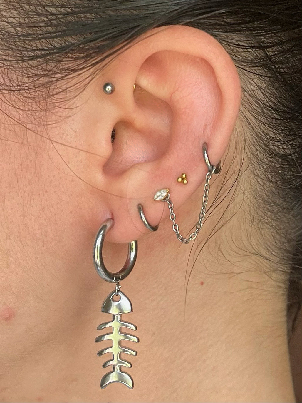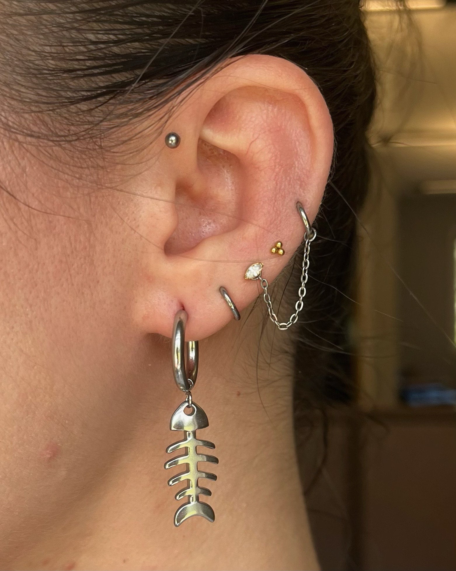 Fishbone Dangling Huggie Hoop Earrings - Pair - Stainless Steel