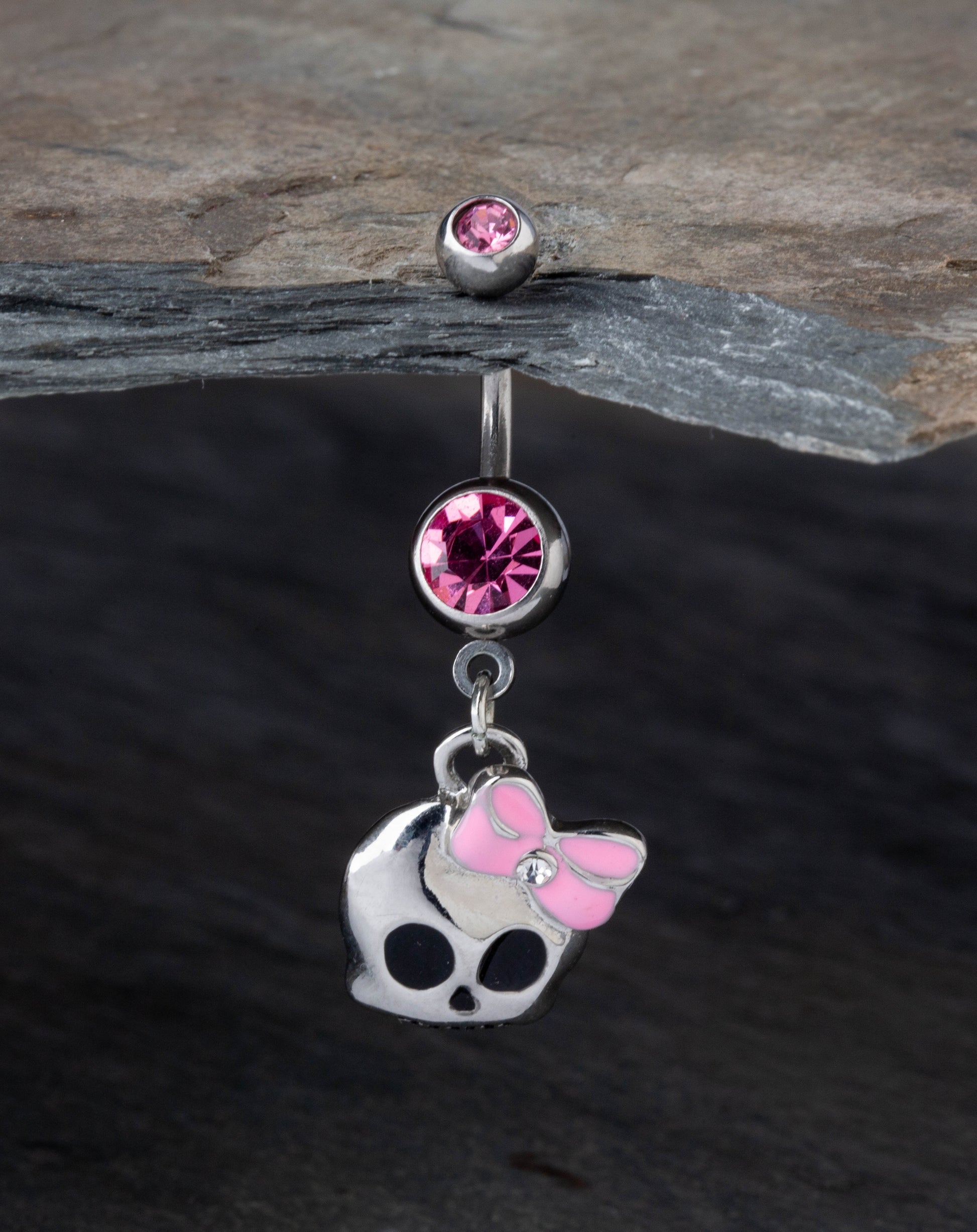Cute Skull with Paved Gem and Epoxy Bow Navel Belly Ring - 316L Surgical Steel