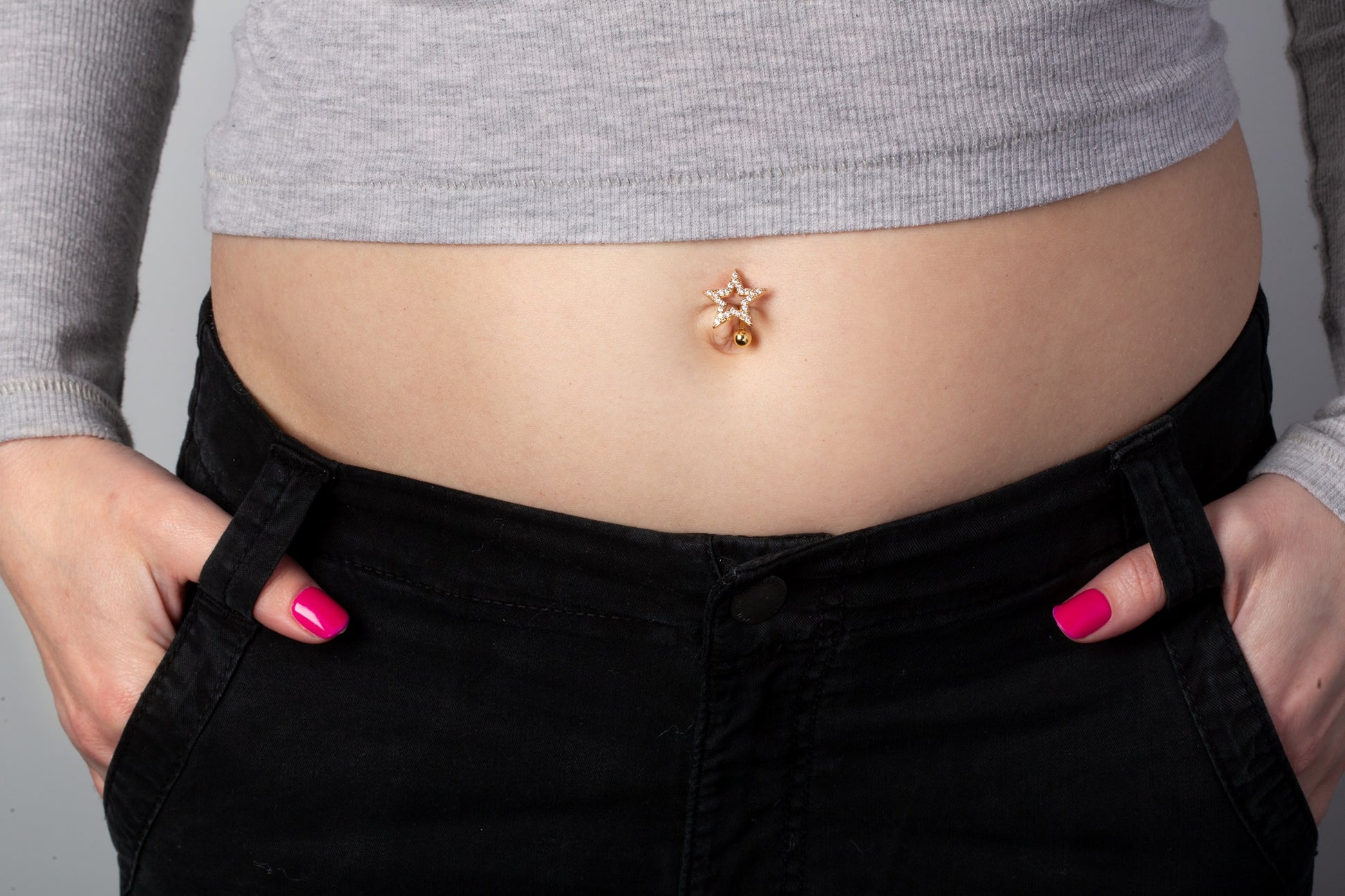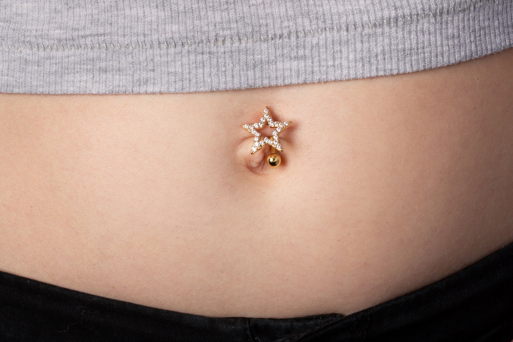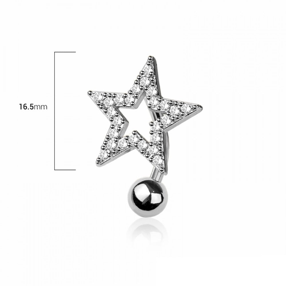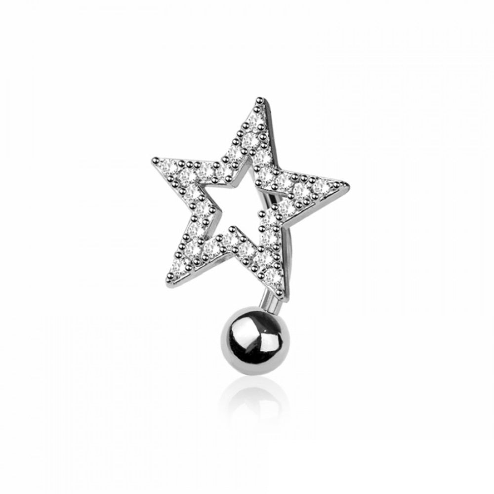 CZ Crystal Star Reverse Belly Button Ring - 316L Stainless Steel