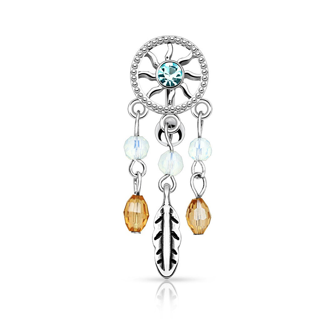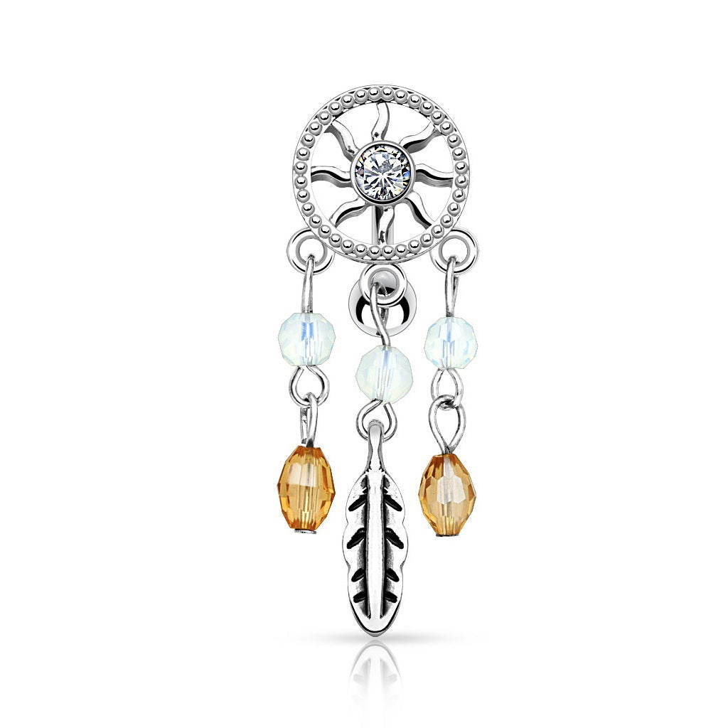 Center CZ Crystal Dream Catcher Dangling Reverse Belly Button Ring - 316L Stainless Steel