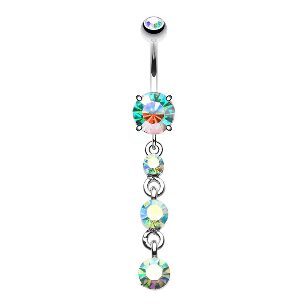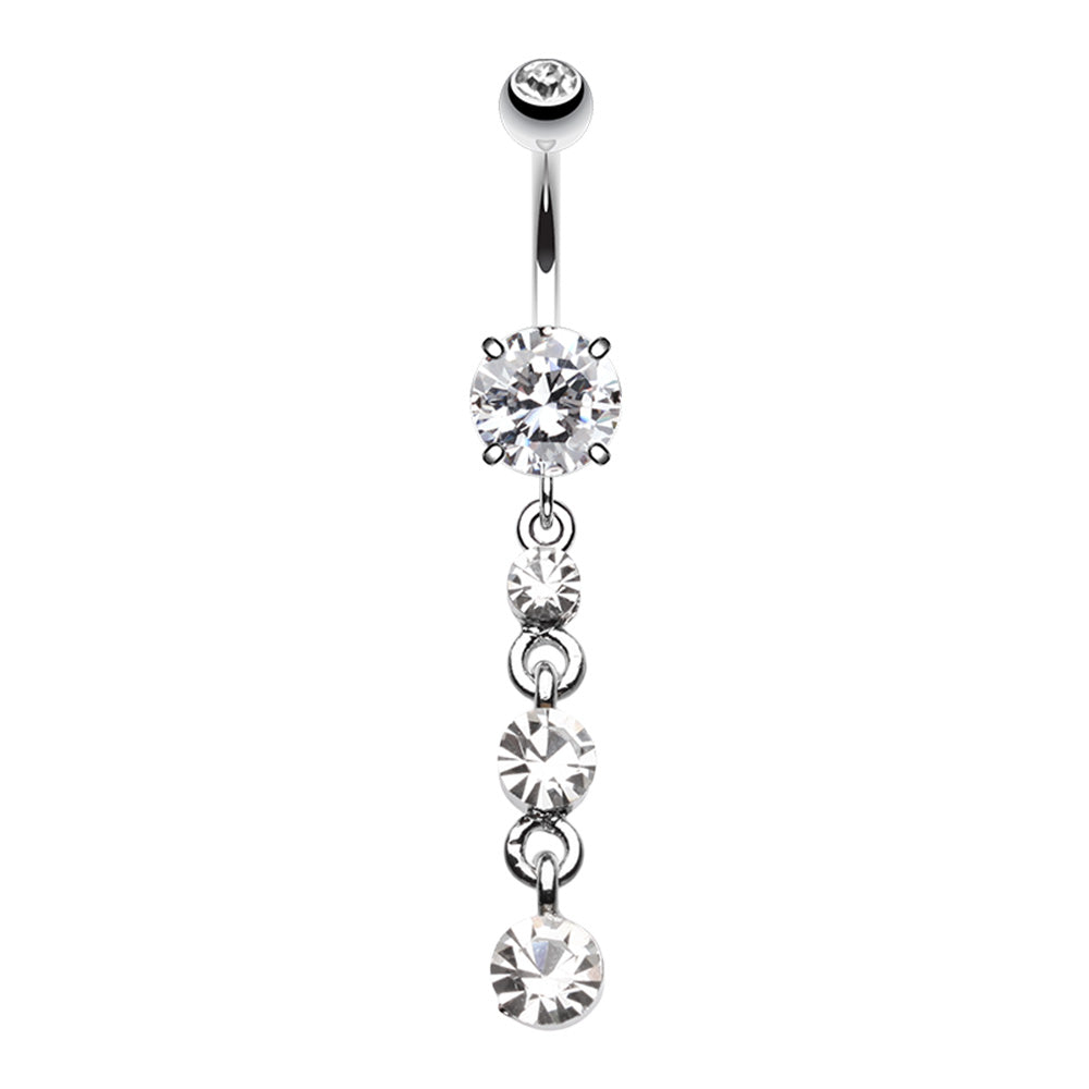 Cascading CZ Crystals Dangling Belly Button Ring - Stainless Steel