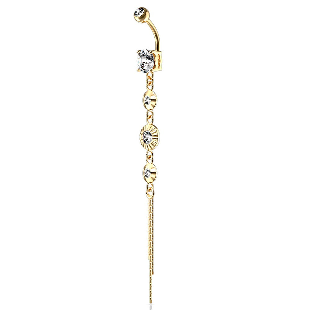 CZ Centered Crystal Drop Chain Dangling Belly Button Ring - 316L Stainless Steel