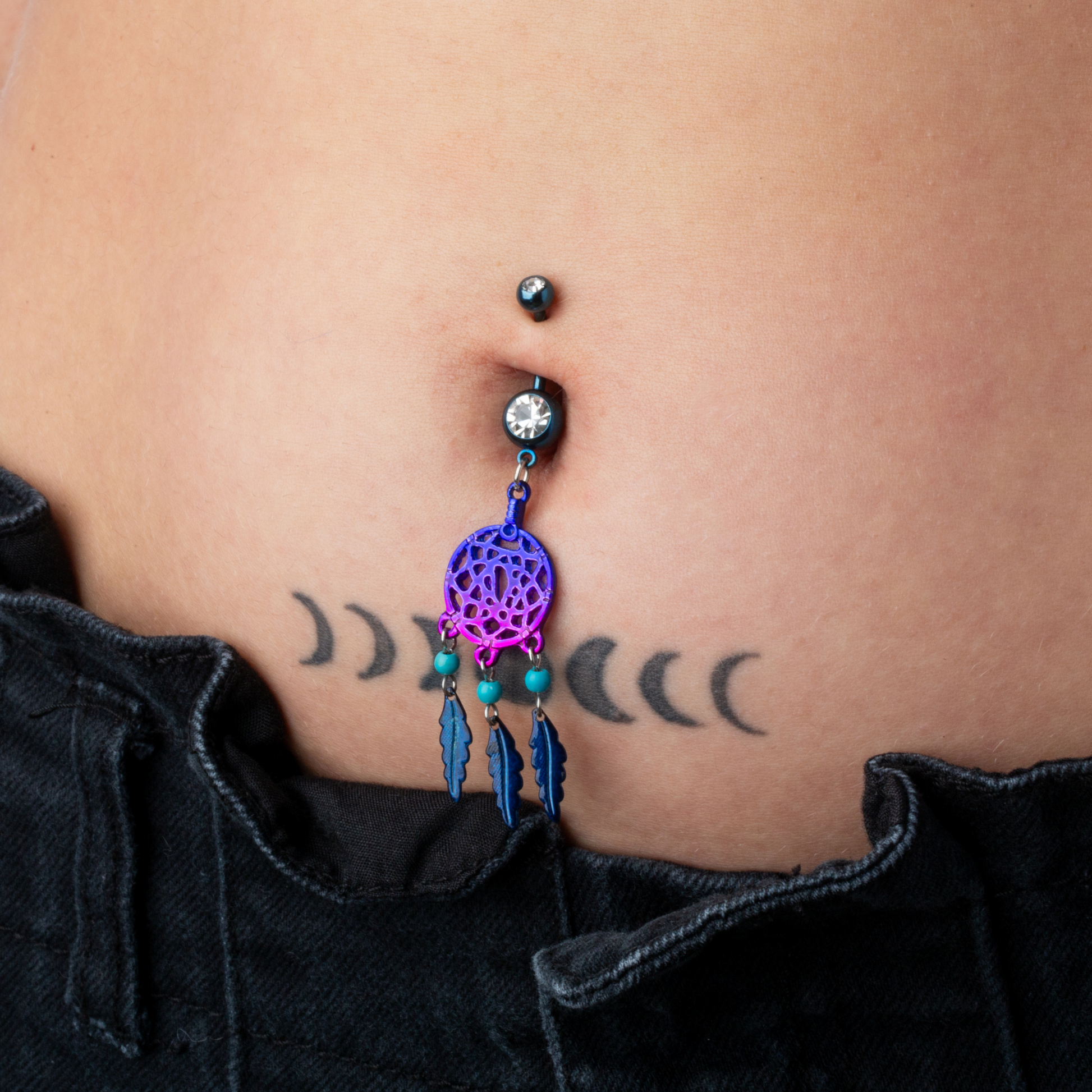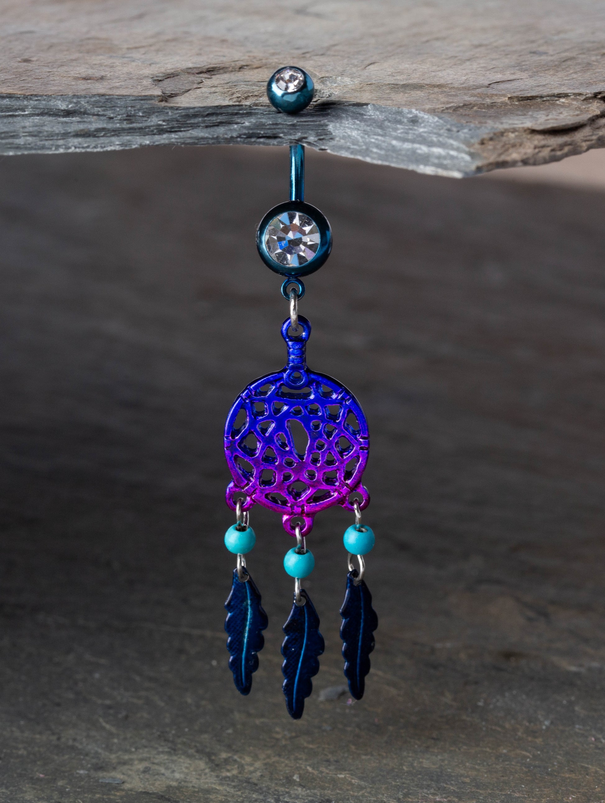 CZ Crystal Blue and Purple Ombre Dream Catcher Dangling Belly Button Ring - Stainless Steel