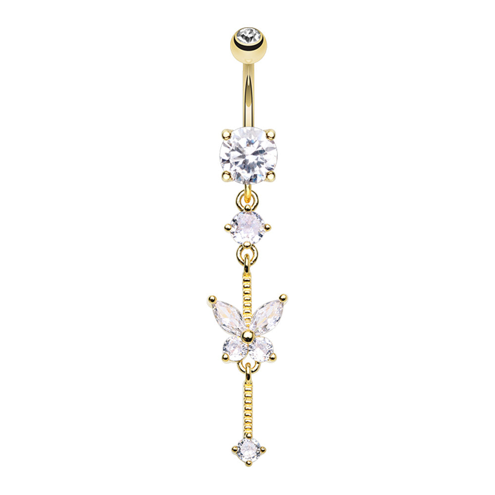 CZ Crystal Butterfly Drop Dangling Belly Button Ring - Stainless Steel