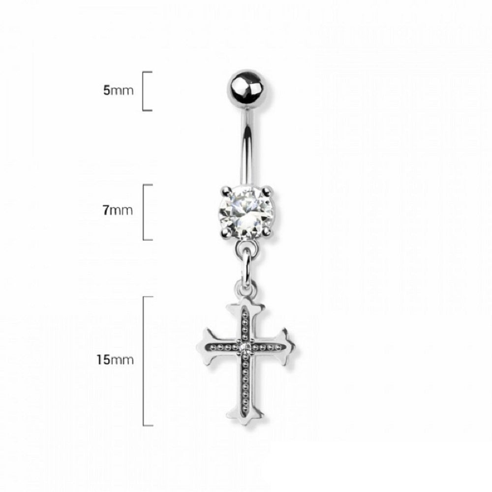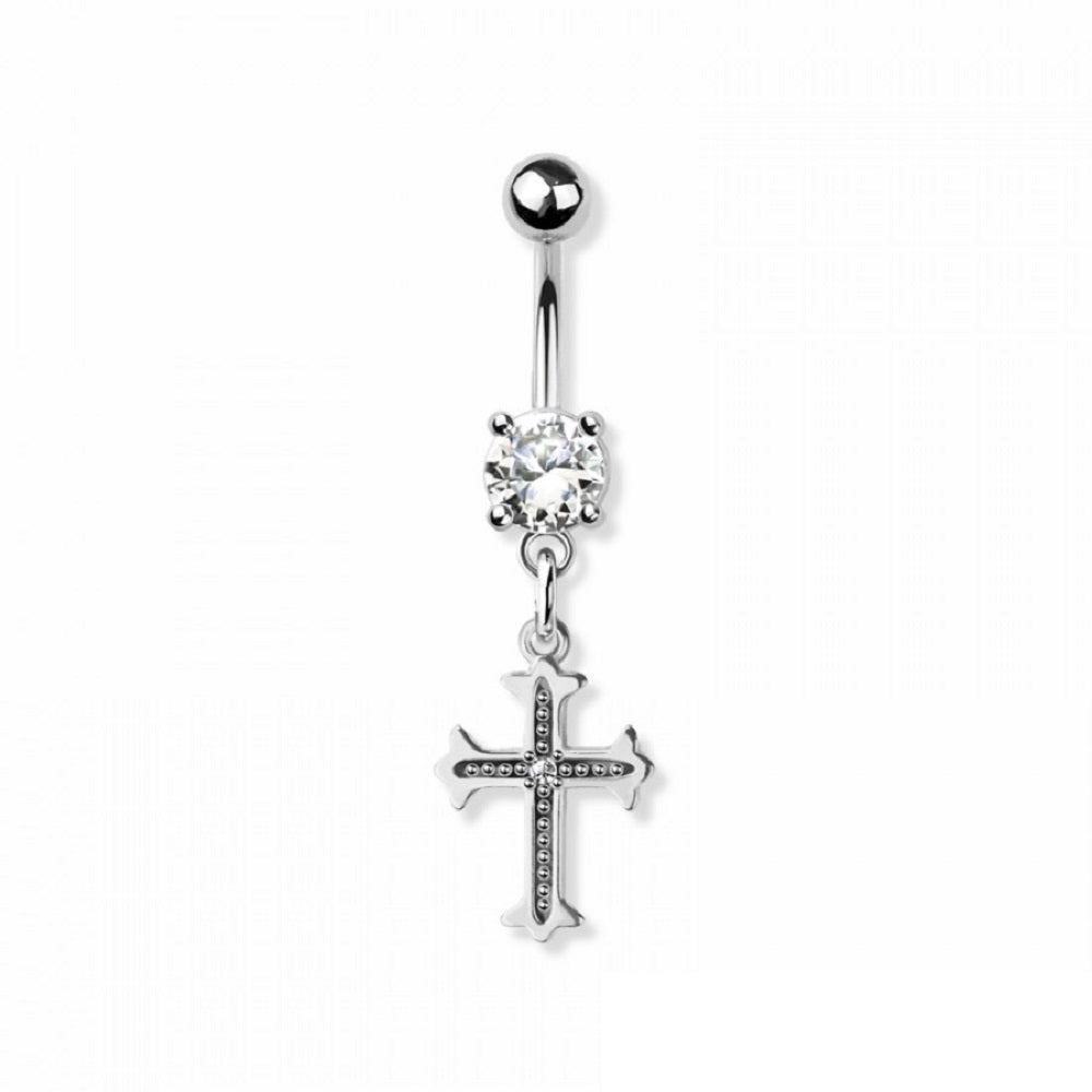 CZ Crystal Cross Dangling Belly Button Ring - 316L Stainless Steel