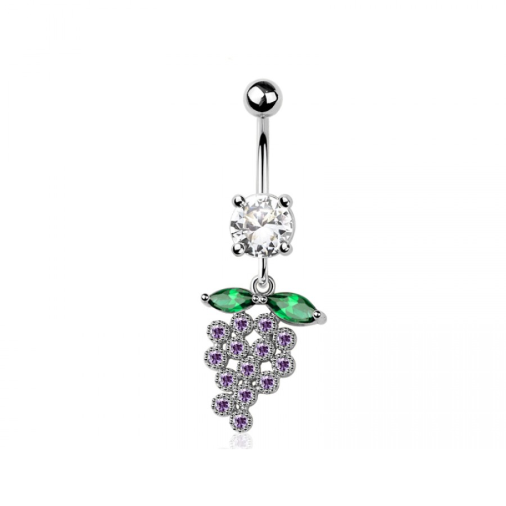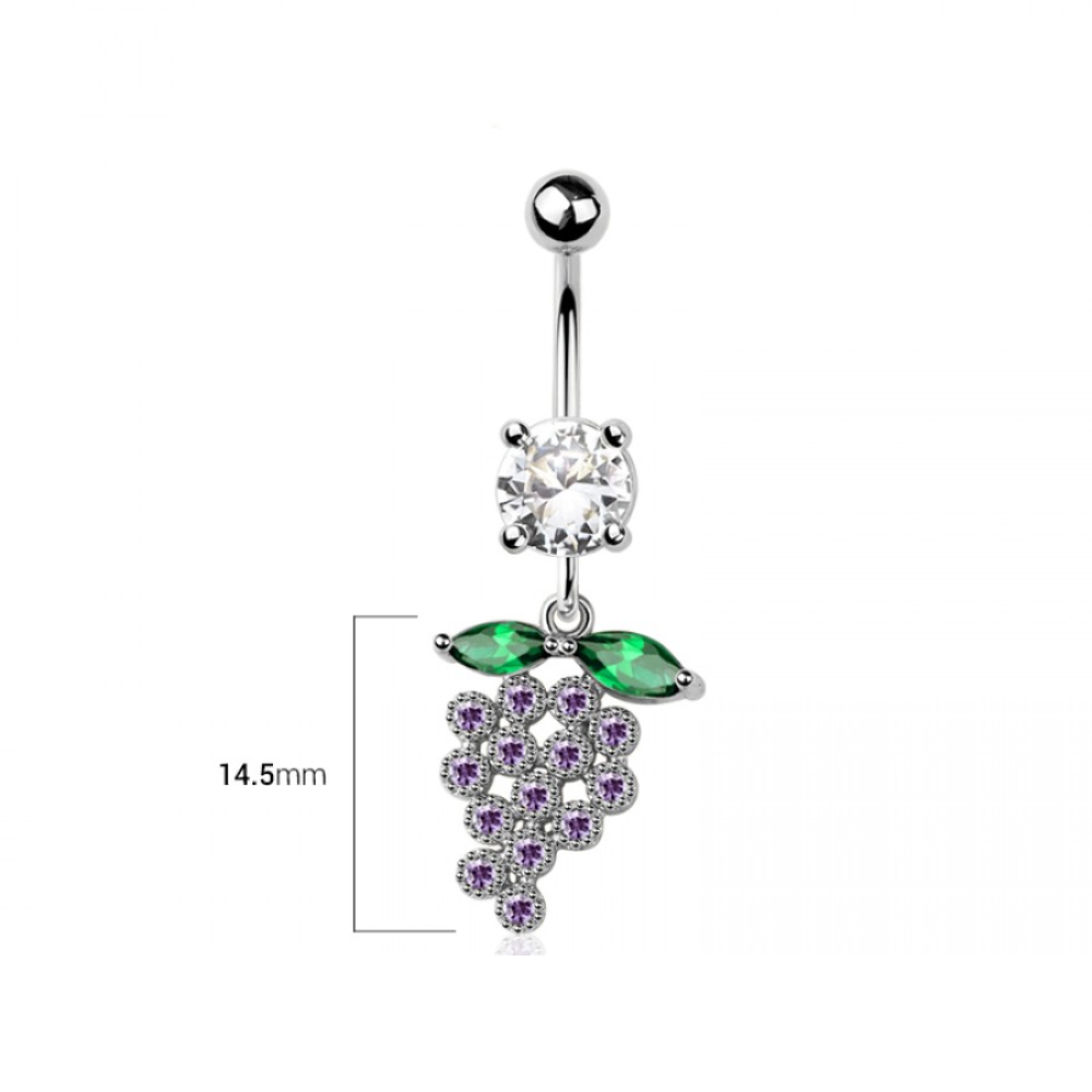 CZ Crystal Grapes Dangling Belly Button Ring - 316L Stainless Steel