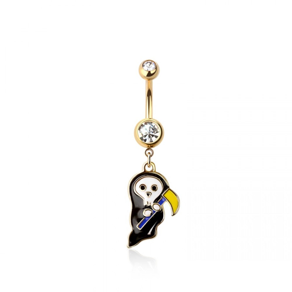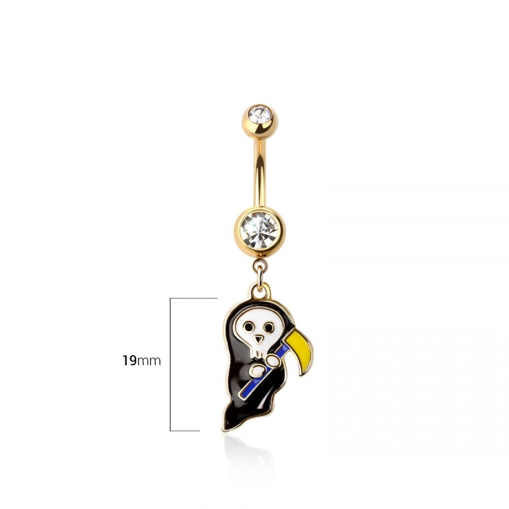 CZ Crystal Grim Reaper Dangling Belly Button Ring - Gold Plated 316L Stainless Steel