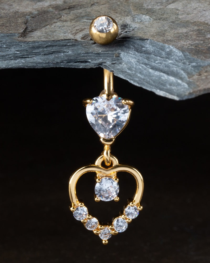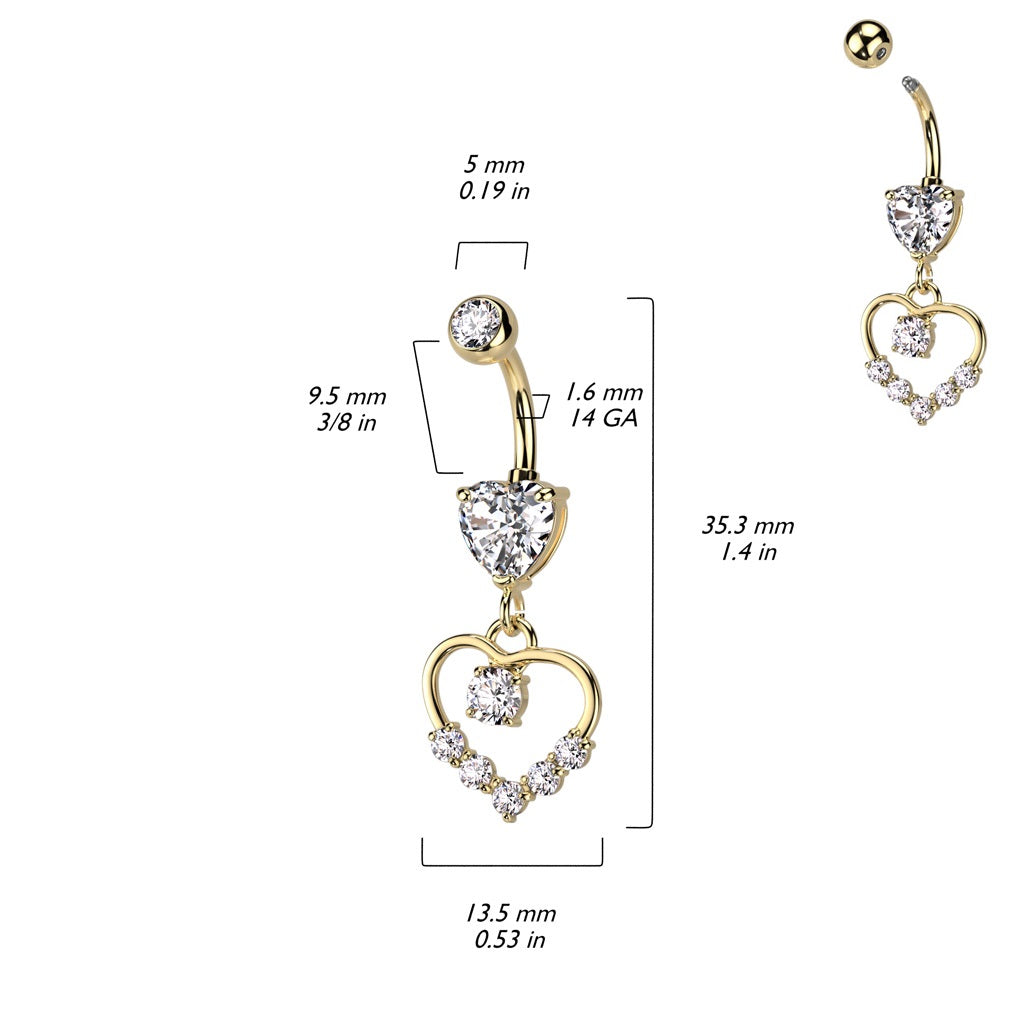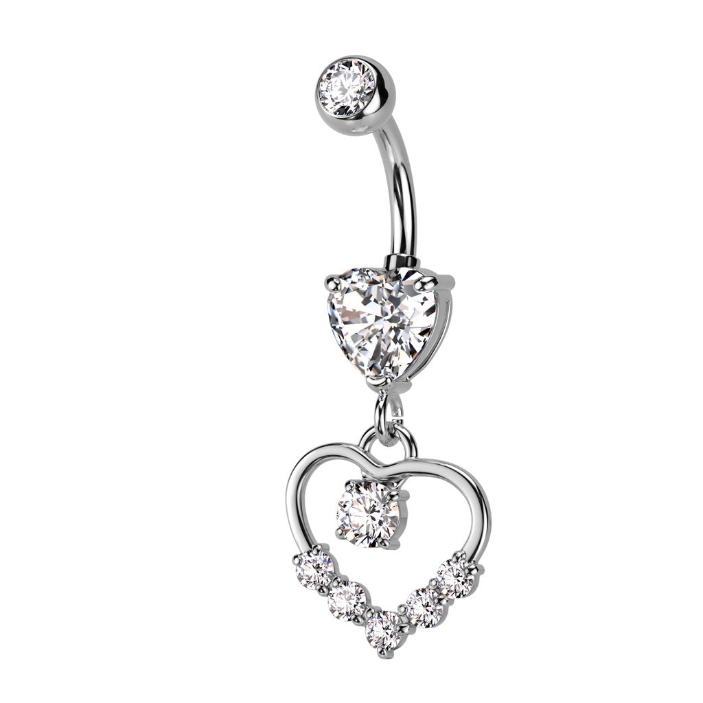 CZ Crystal Hollow Heart Shaped Dangling Belly Button Ring - 316L Stainless Steel