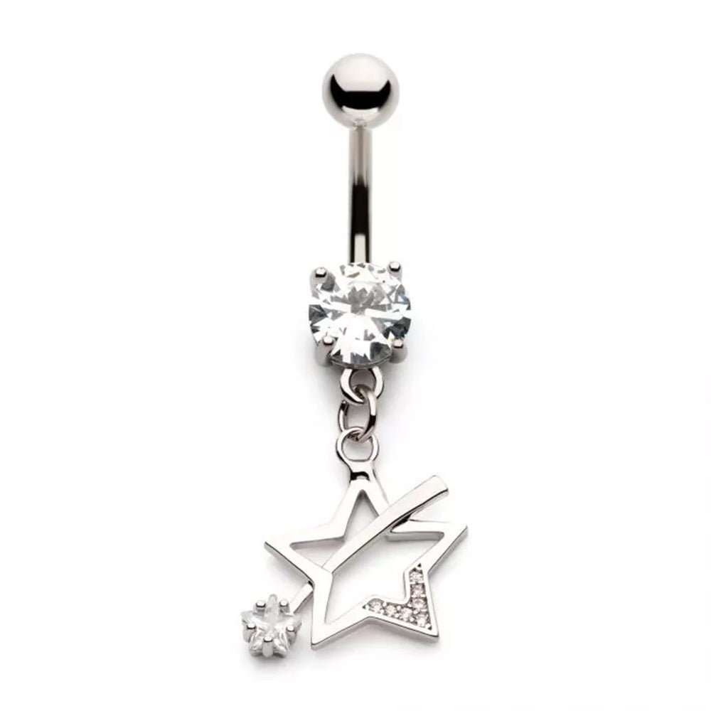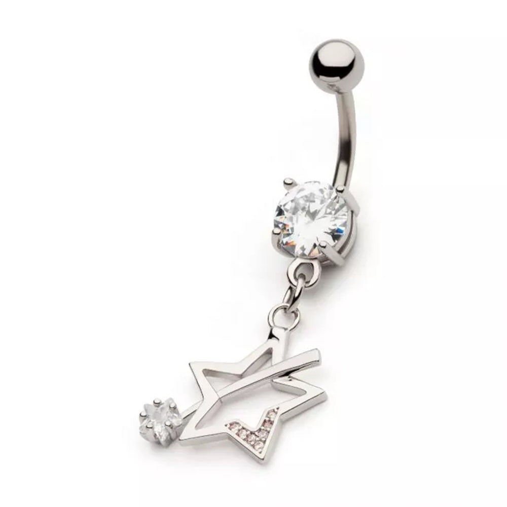 CZ Crystal Shooting Star Dangling Belly Button Ring - 316L Stainless Steel