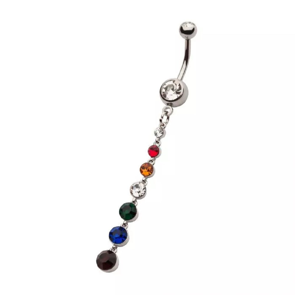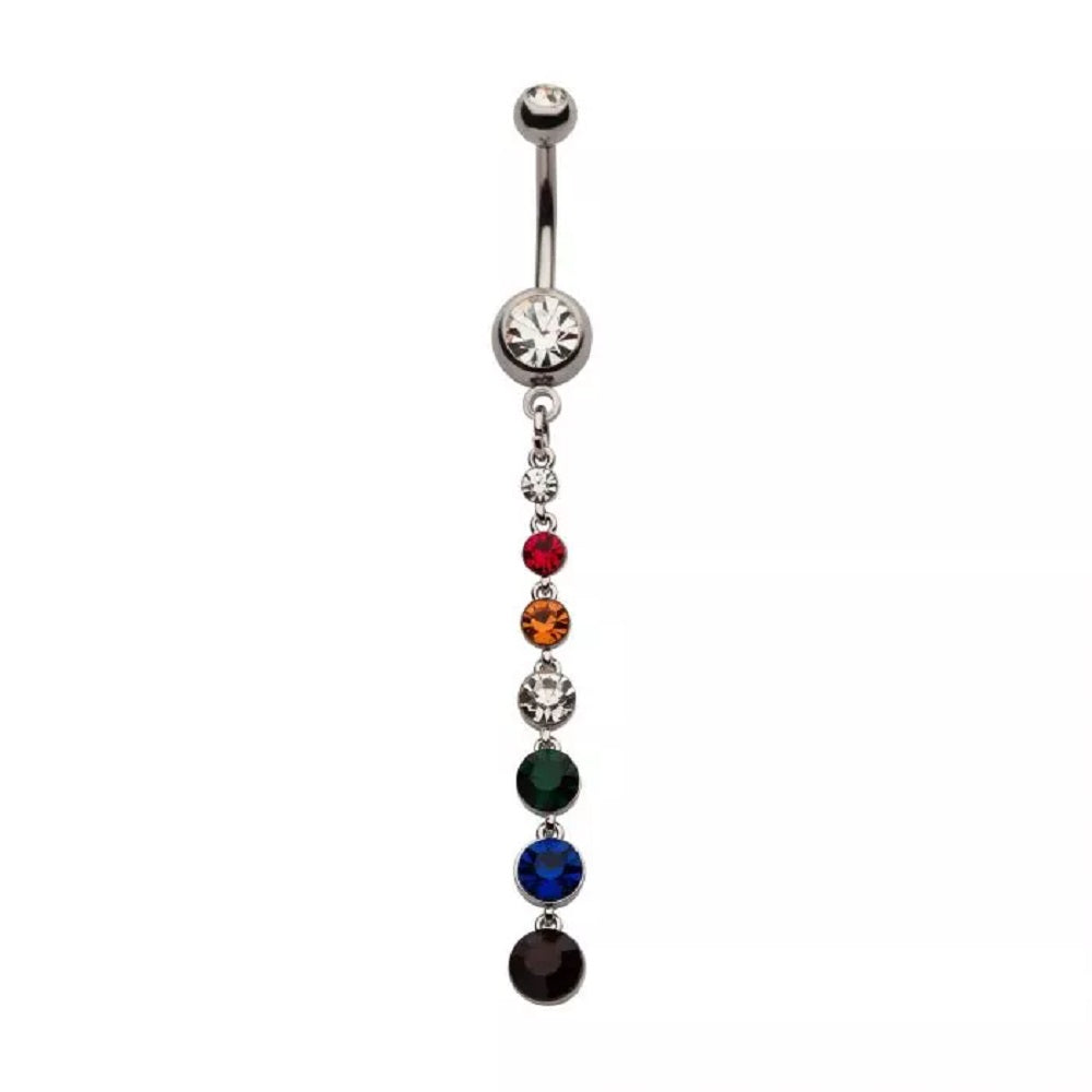Descending Rainbow CZ Crystals Dangling Belly Button Ring - 316L Stainless Steel