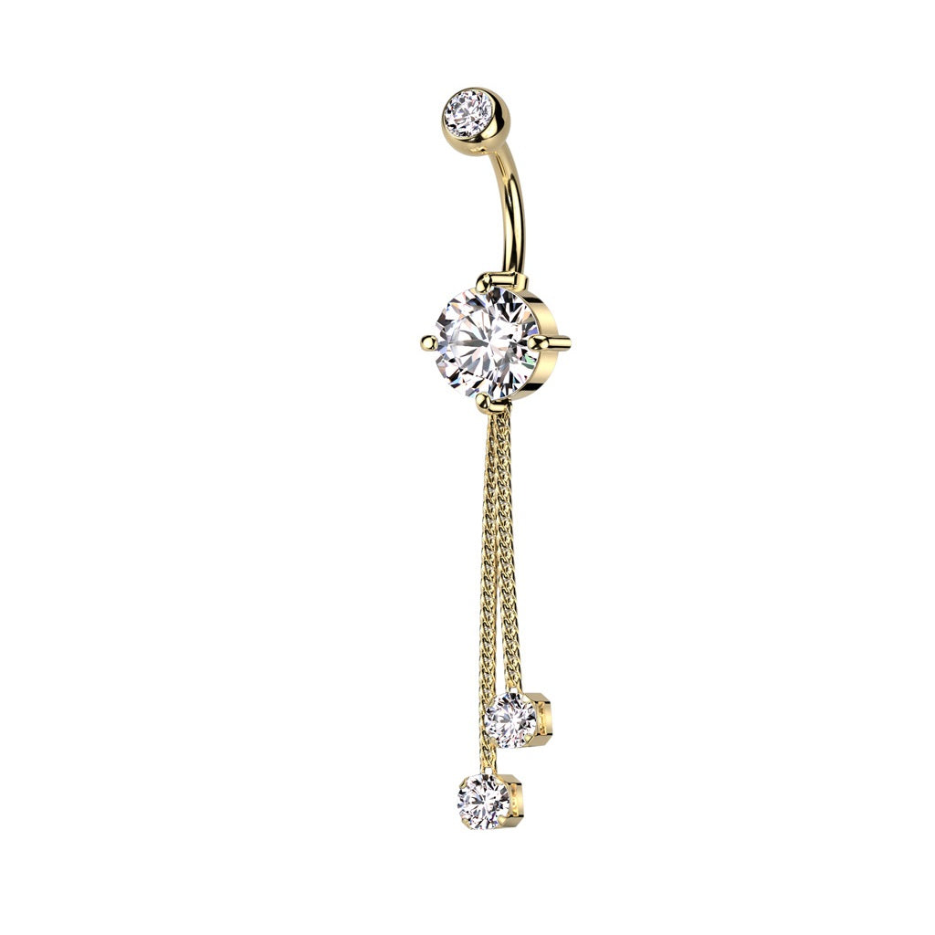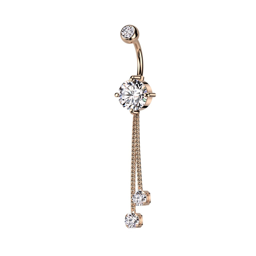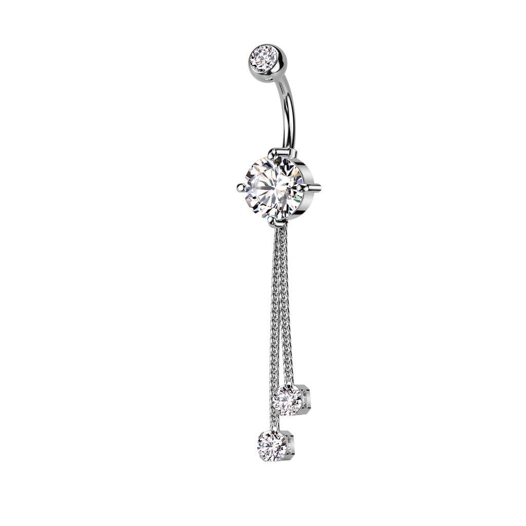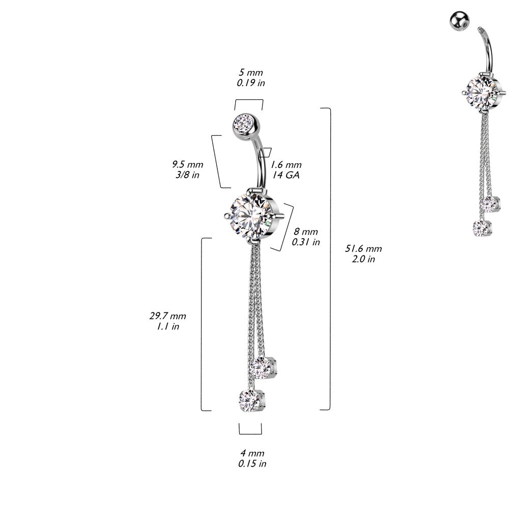 Double Jeweled with Double CZ Crystal Chain Dangling Belly Button Ring - 316L Stainless Steel