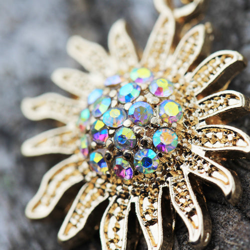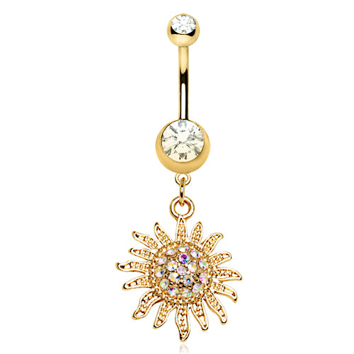 Gold Plated Shimmering Sunburst Dangling Belly Button Ring - Stainless Steel