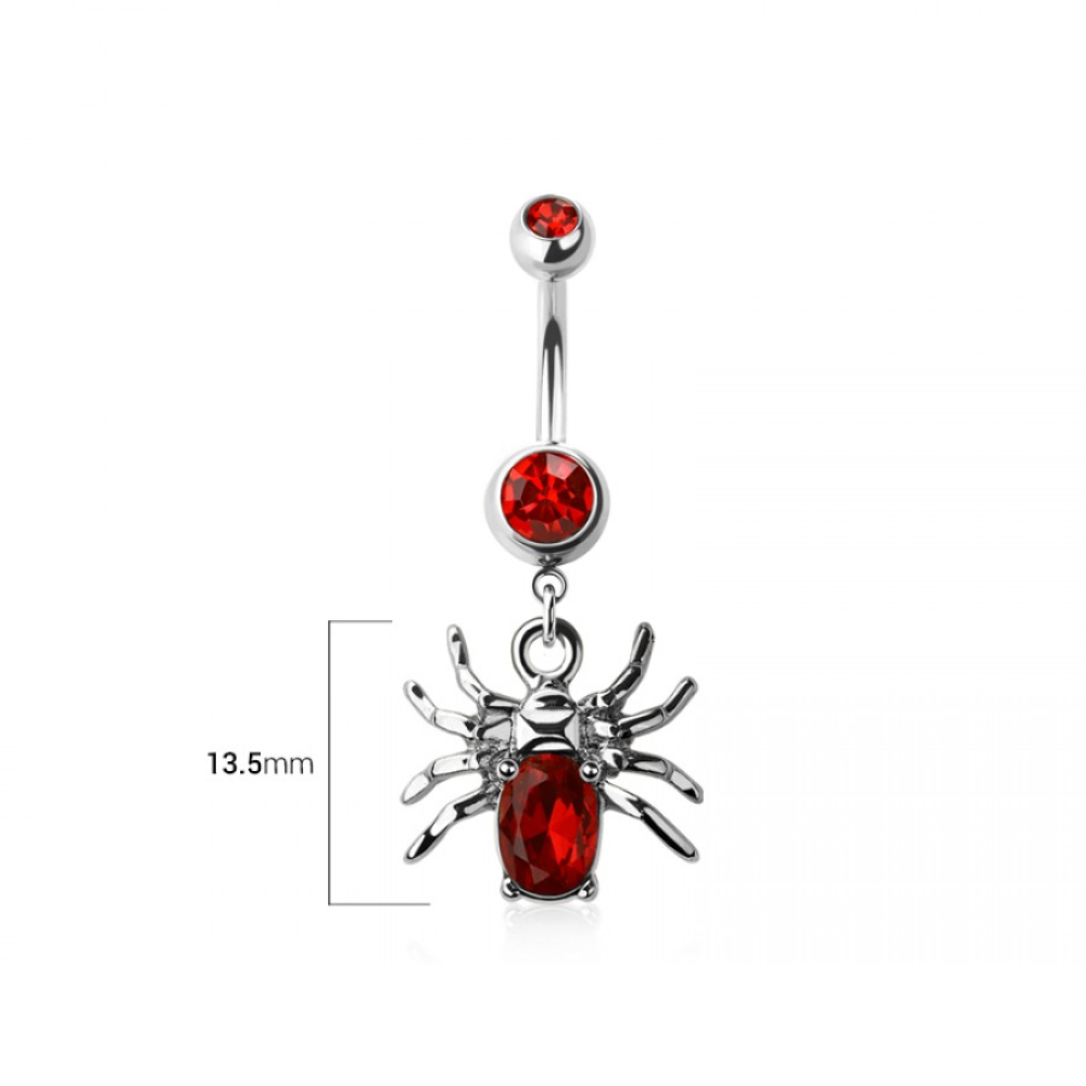 Red CZ Crystal Spider Dangling Belly Button Ring - 316L Stainless Steel