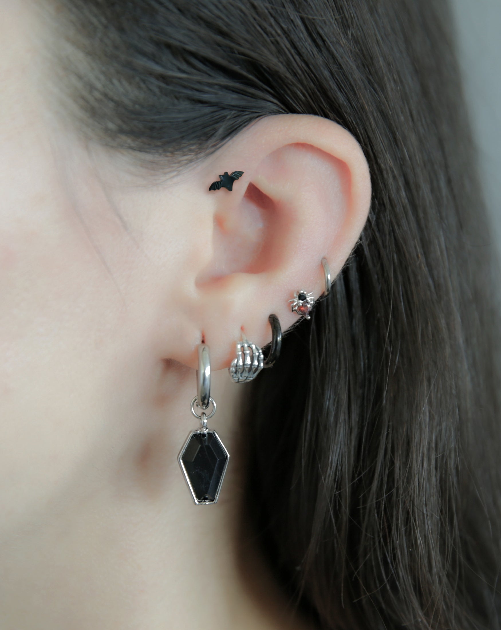 CZ Crystal Coffin Dangling Huggie Hoop Earrings - Pair - 316L Stainless Steel