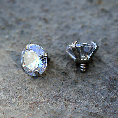 Clear 5mm CZ Crystal Gem Internally Threaded Dermal Top - 316L Stainless Steel