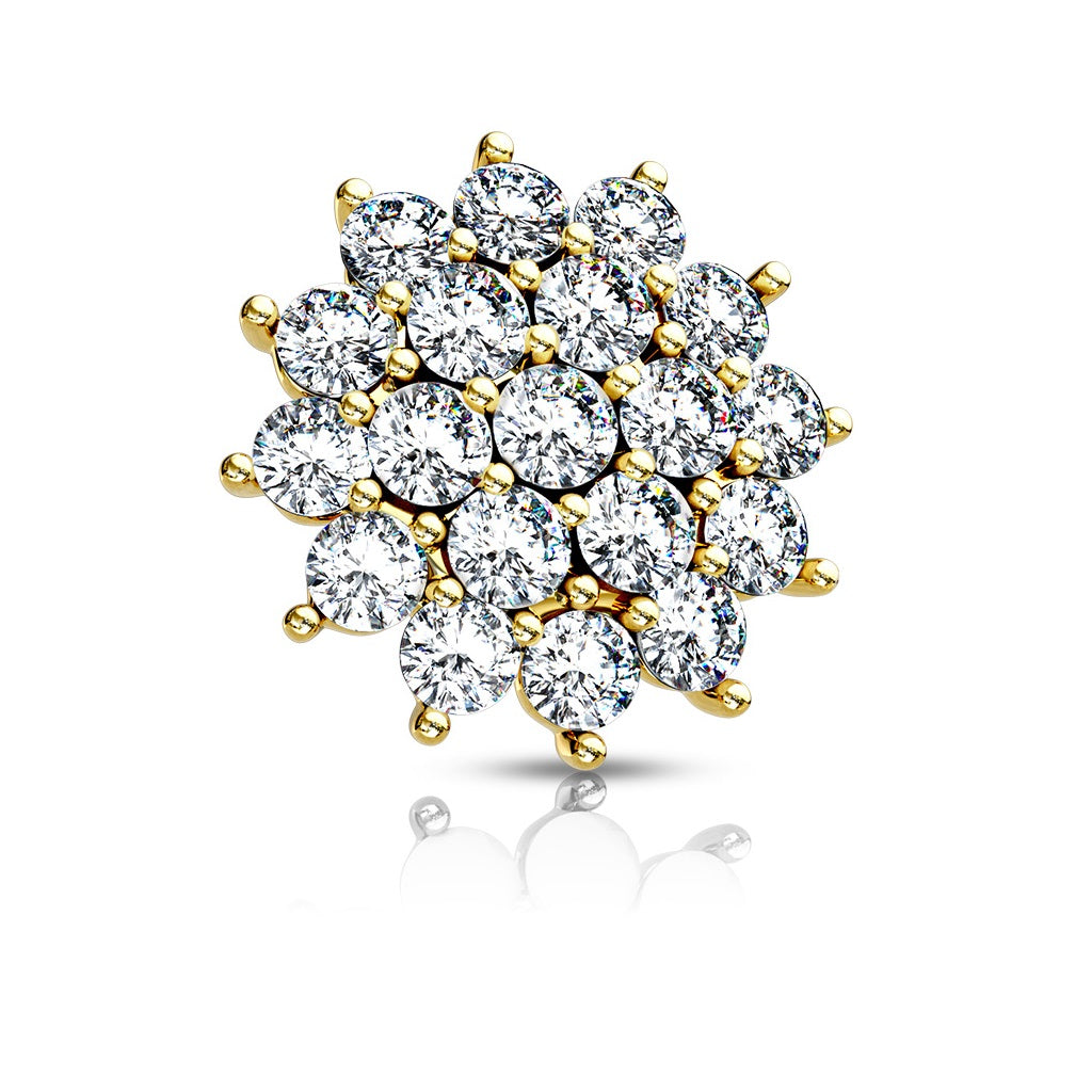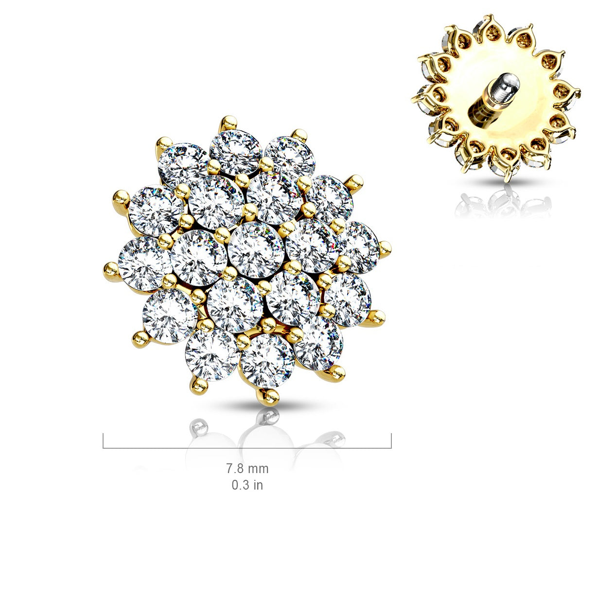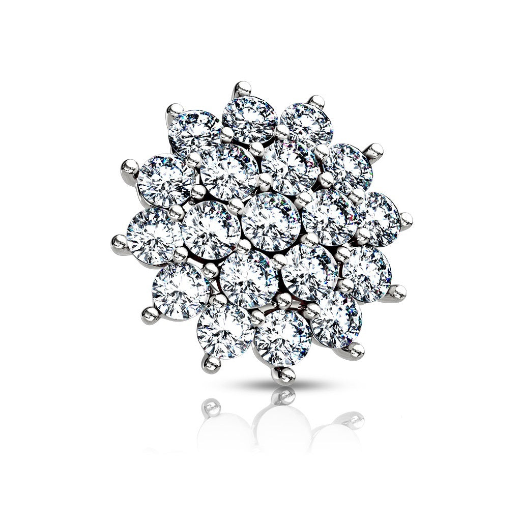 Internally Threaded CZ Crystal Paved Sunburst Dermal Anchor Top - Stainless Steel