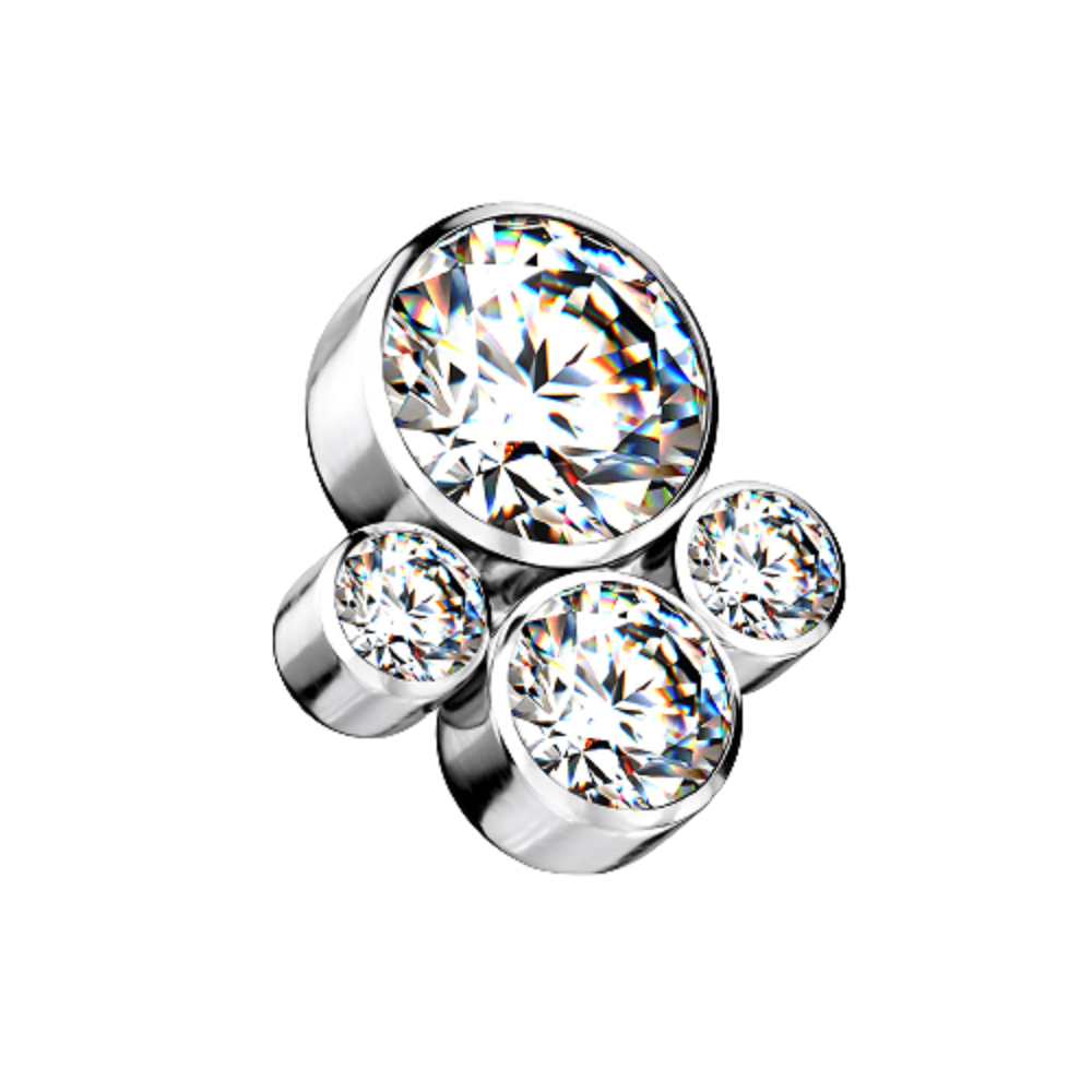Internally Threaded CZ Crystal Paw Print Dermal Anchor Top - G23 Implant Grade Titanium