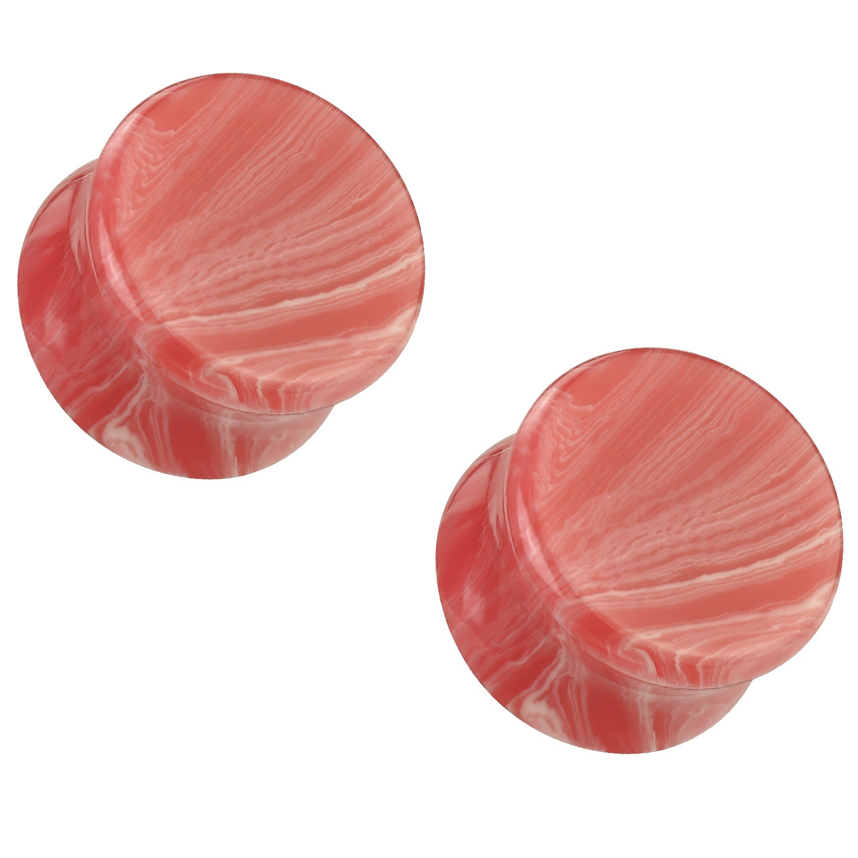 Red Lace Synthetic Stone Double Flared Plugs - Pair