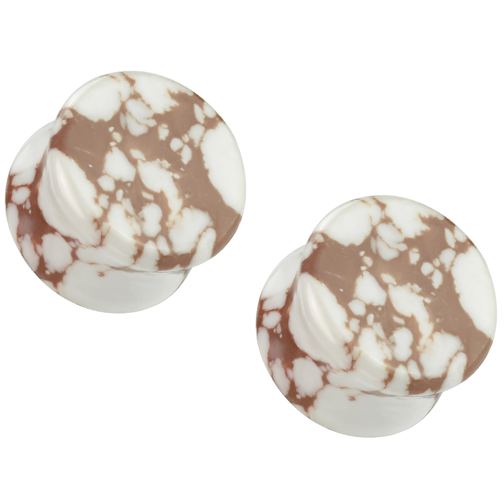White and Brown Synthetic Stone Double Flared Plugs - Pair