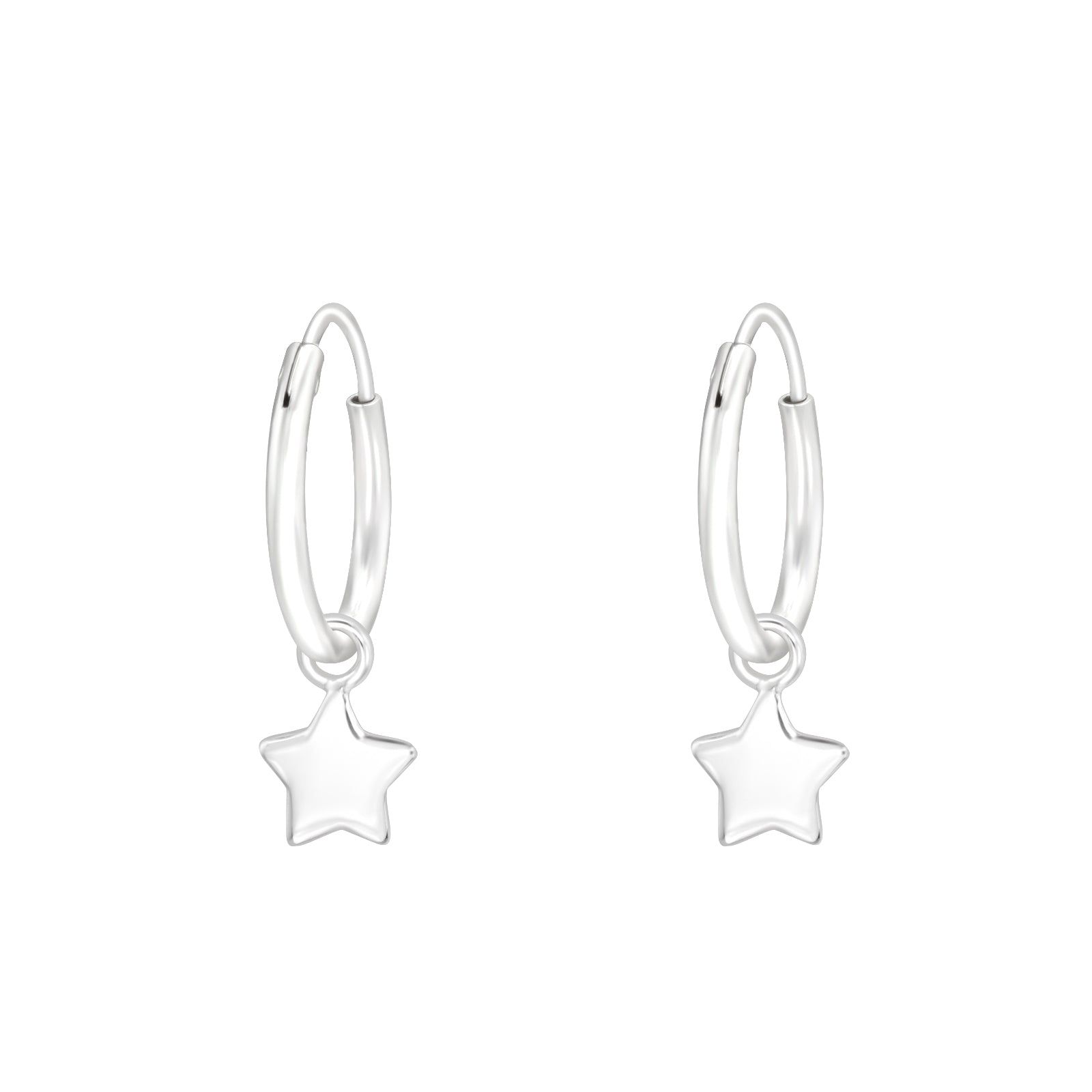 Dangling Star 12mm Hoop Earrings - Pair - 925 Sterling Silver