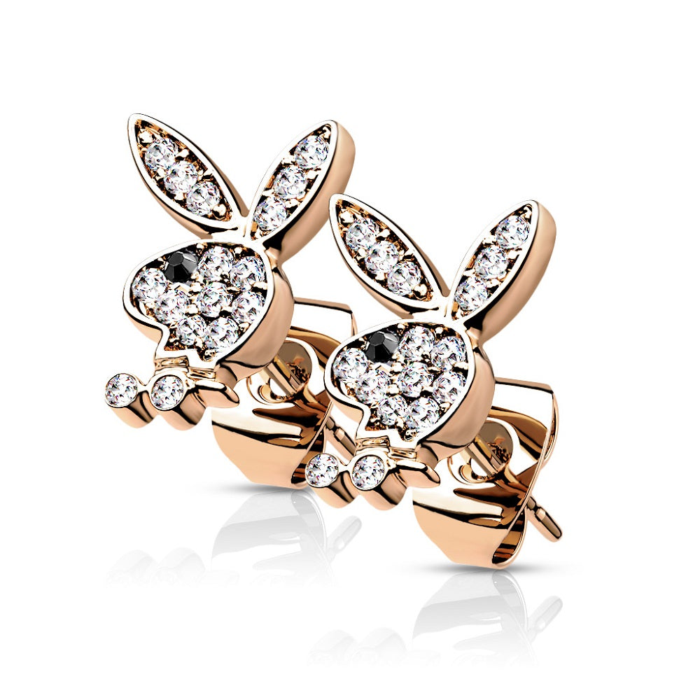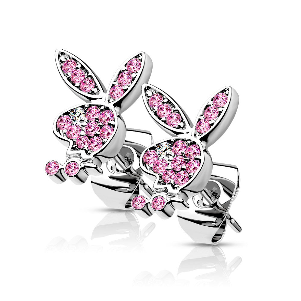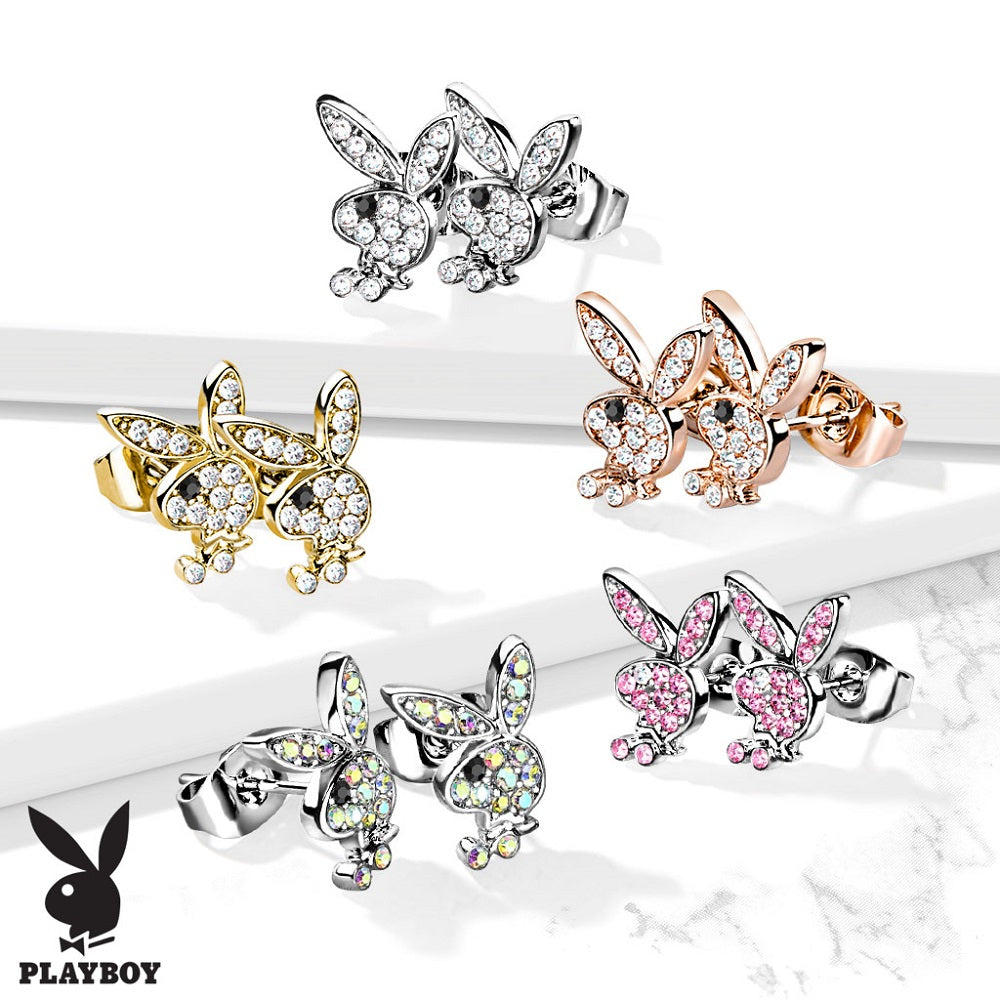 Playboy Bunny CZ Crystal Paved Stud Earrings - Pair - 316L Stainless Steel
