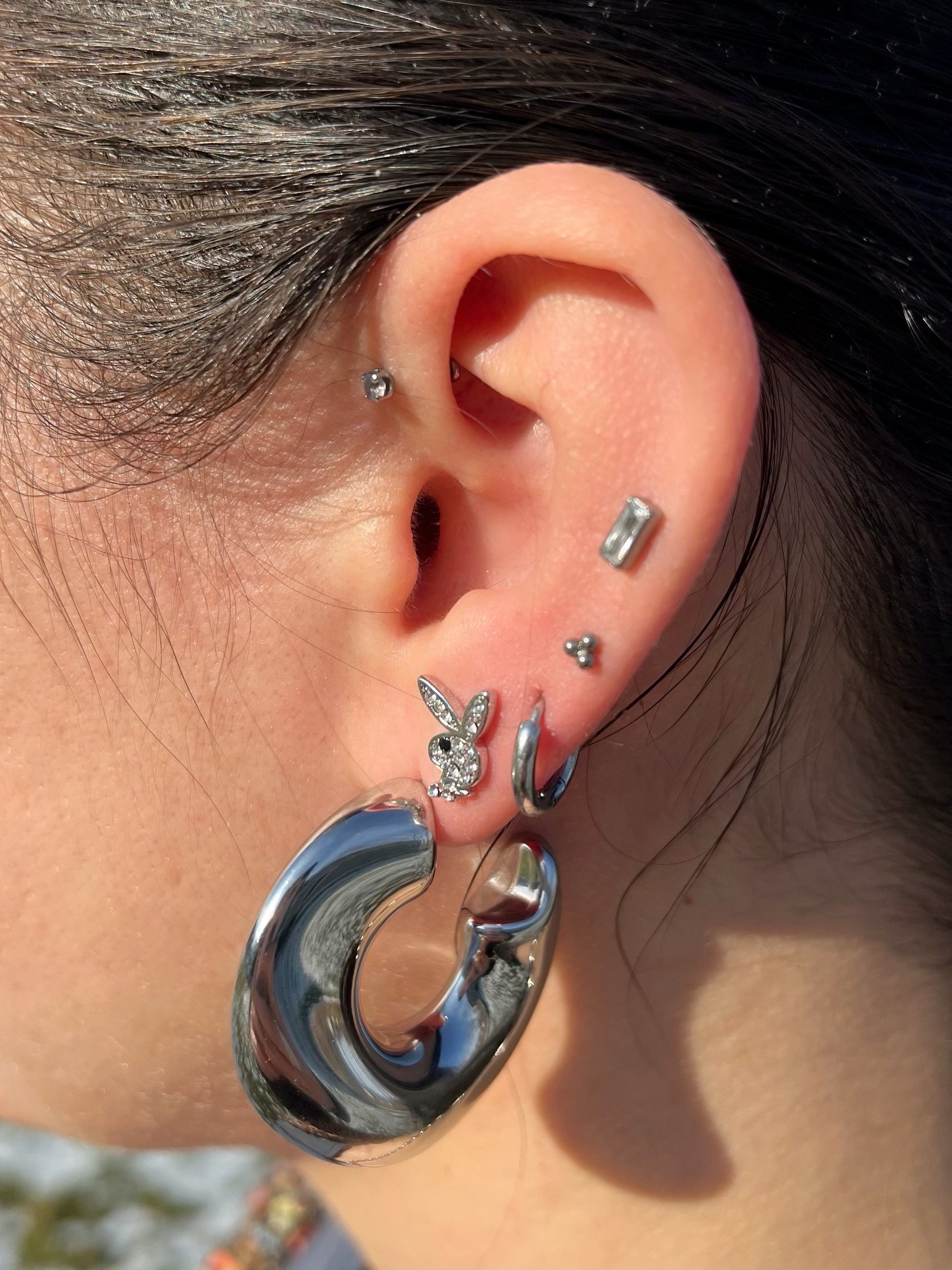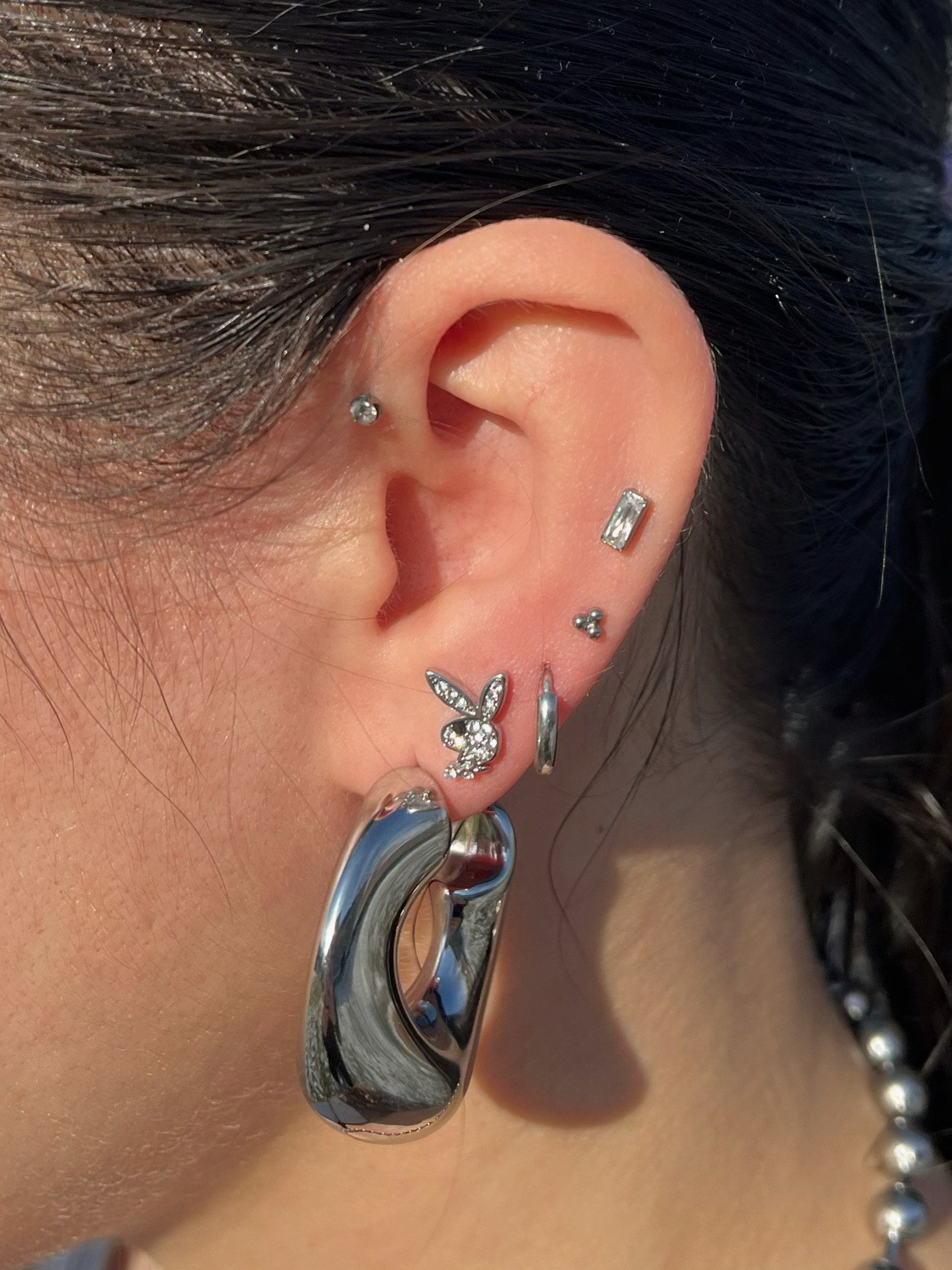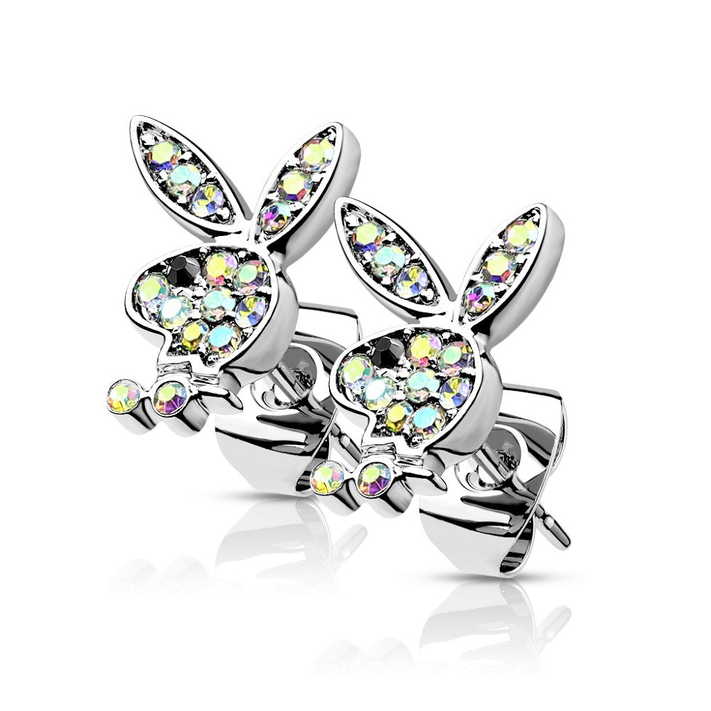 Playboy Bunny CZ Crystal Paved Stud Earrings - Pair - 316L Stainless Steel