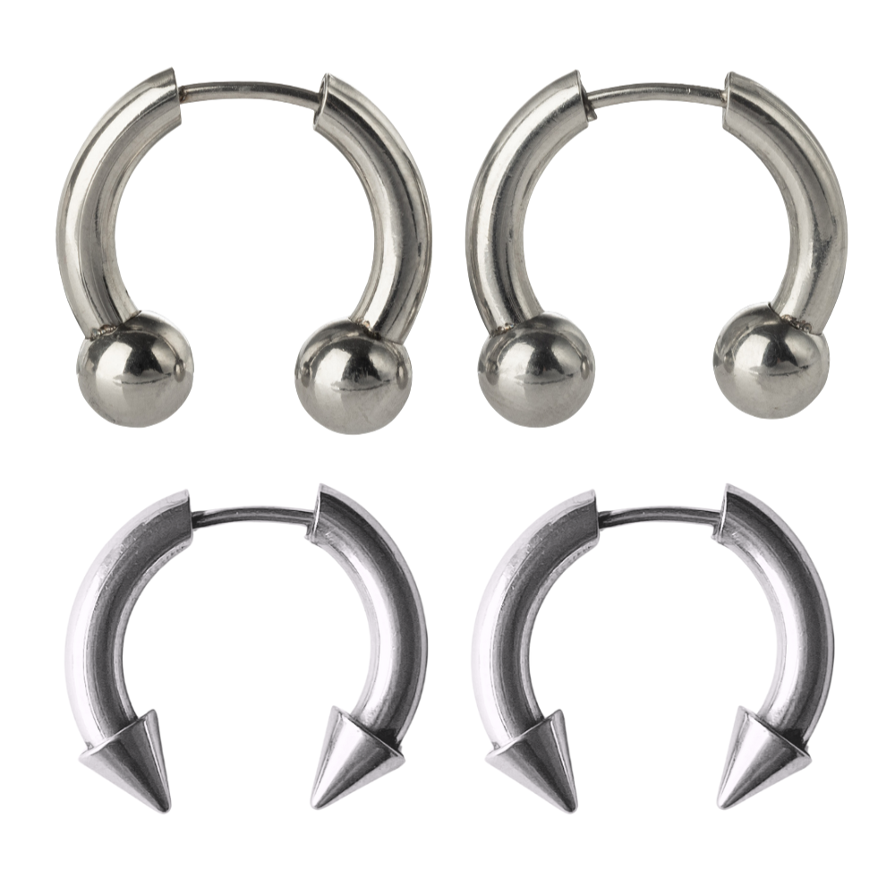 Set of 2 Pairs of Spike and Ball Fake Gauge Horseshoe Barbells - 316L Stainless Steel