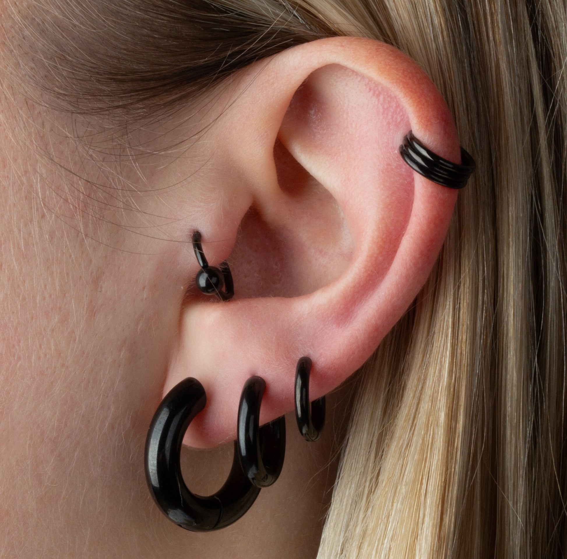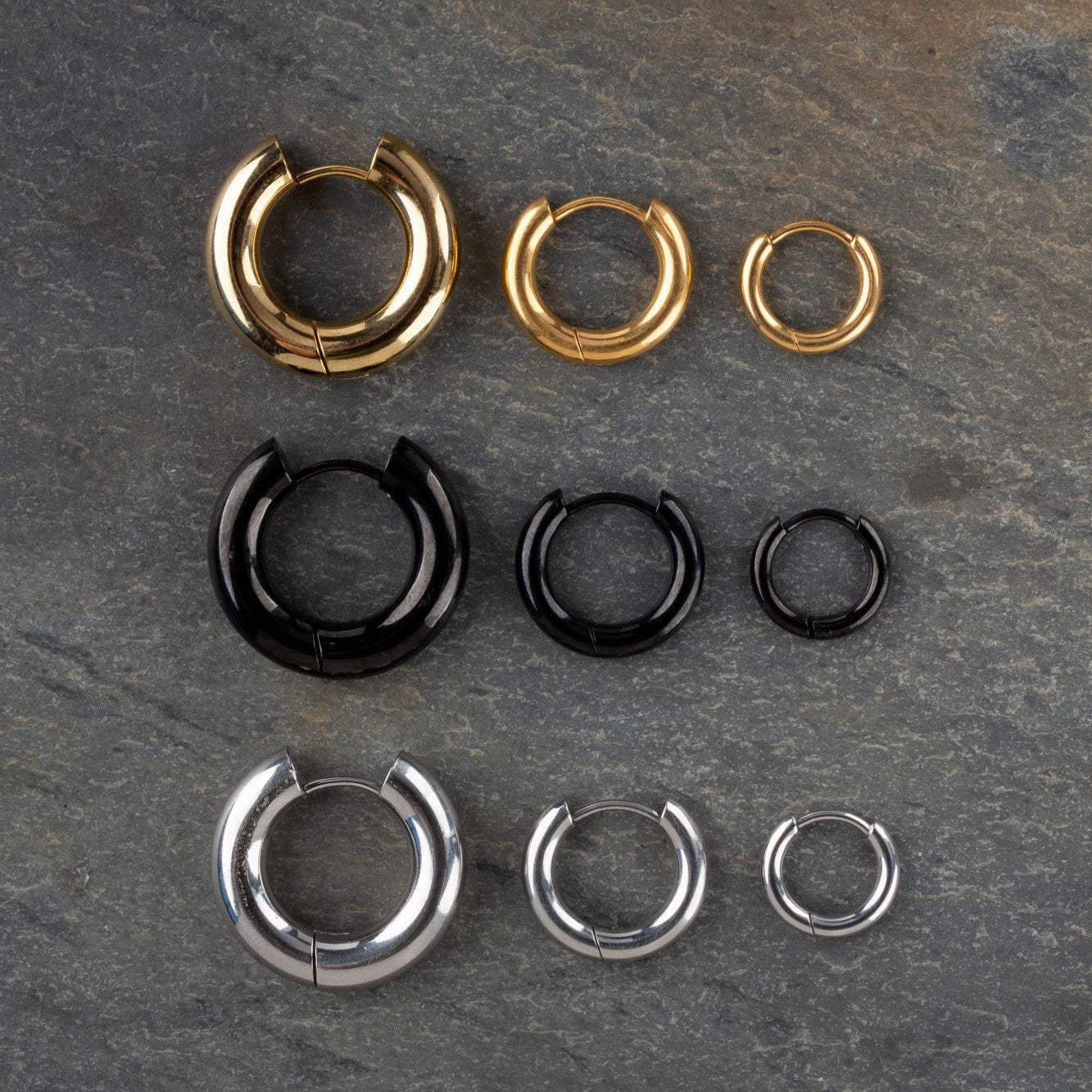 Set of 3 Pairs of Classic Round Hinged Huggie Hoop Earrings - 316L Stainless Steel