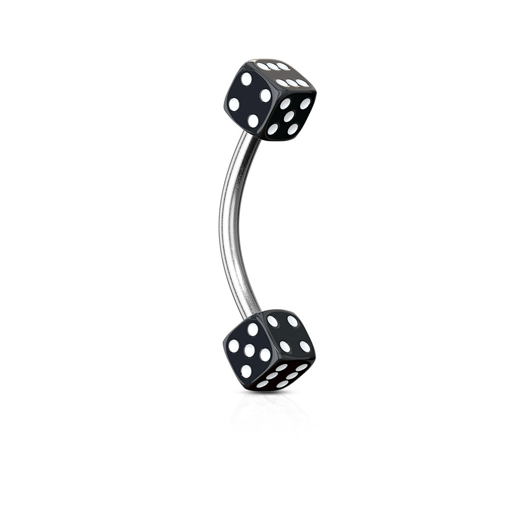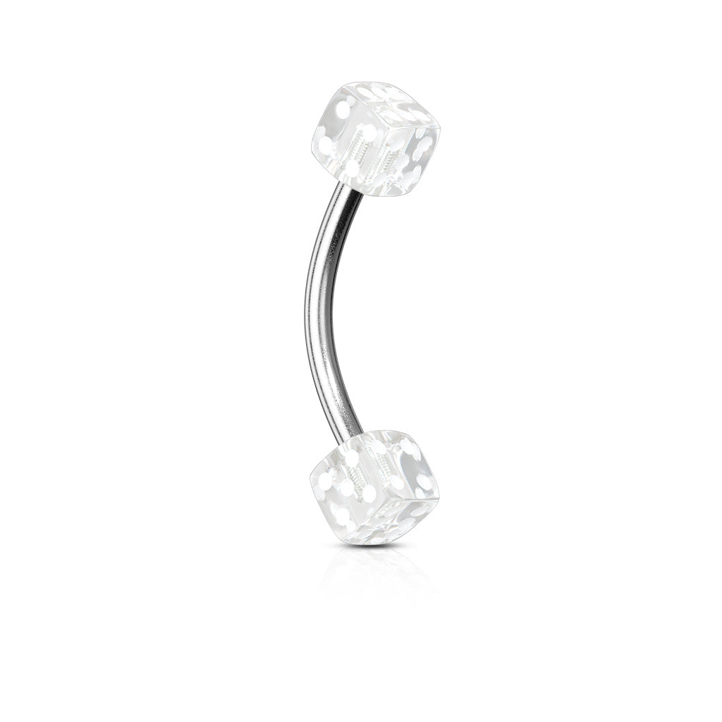 Acrylic Dice Curved Eyebrow Barbell - 316L Stainless Steel