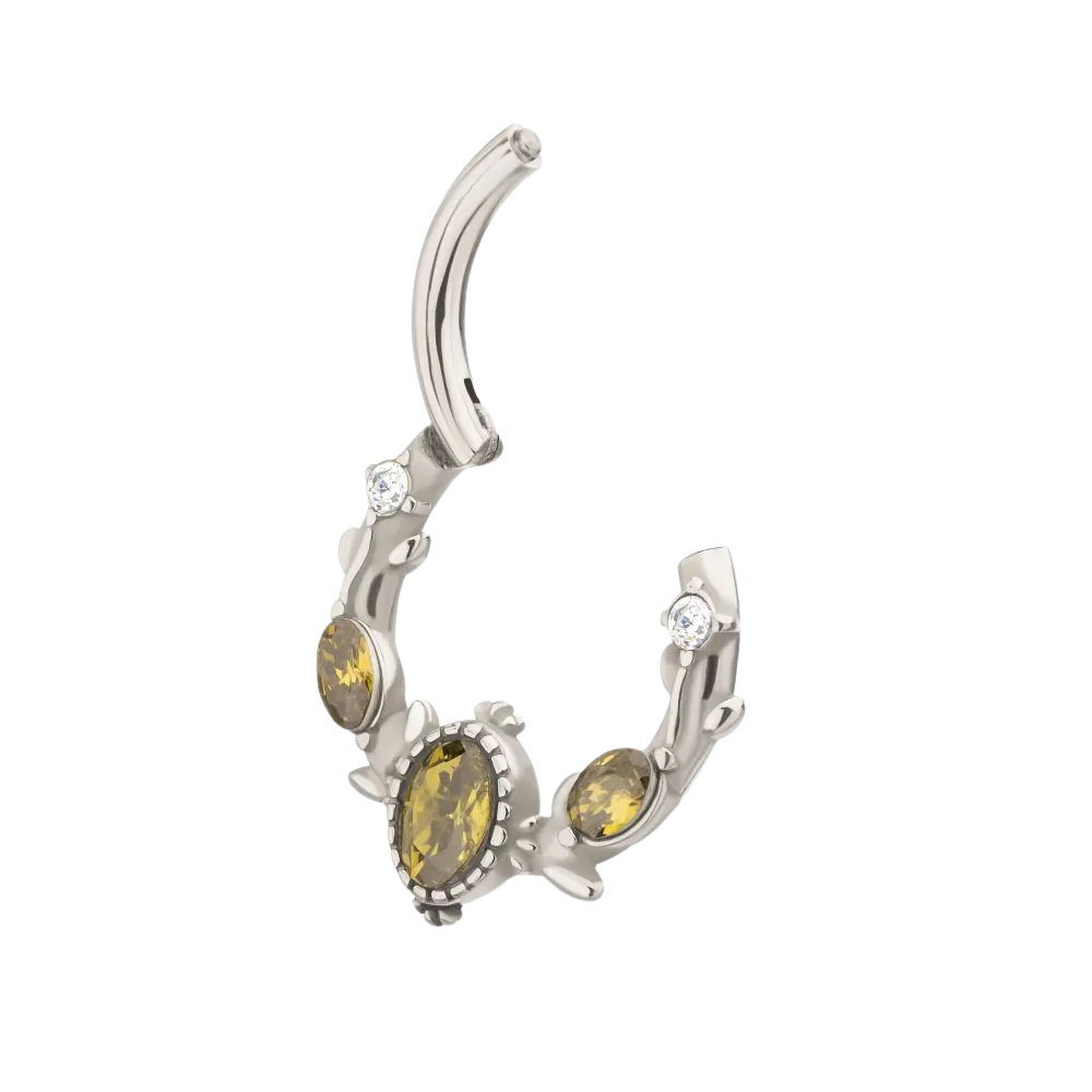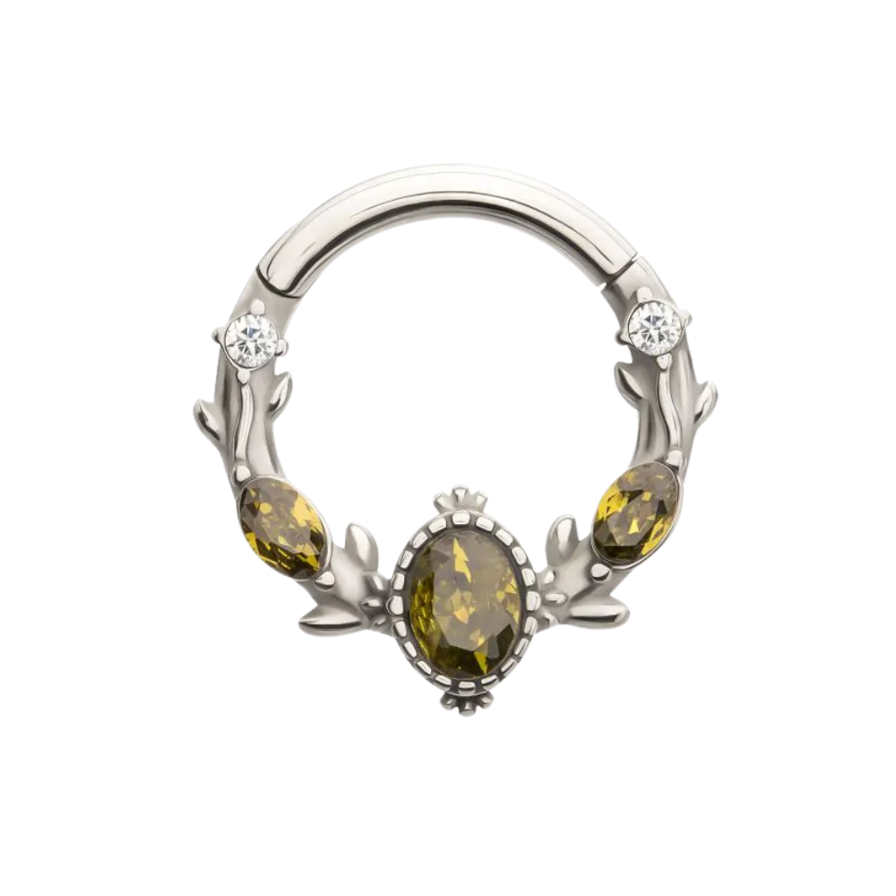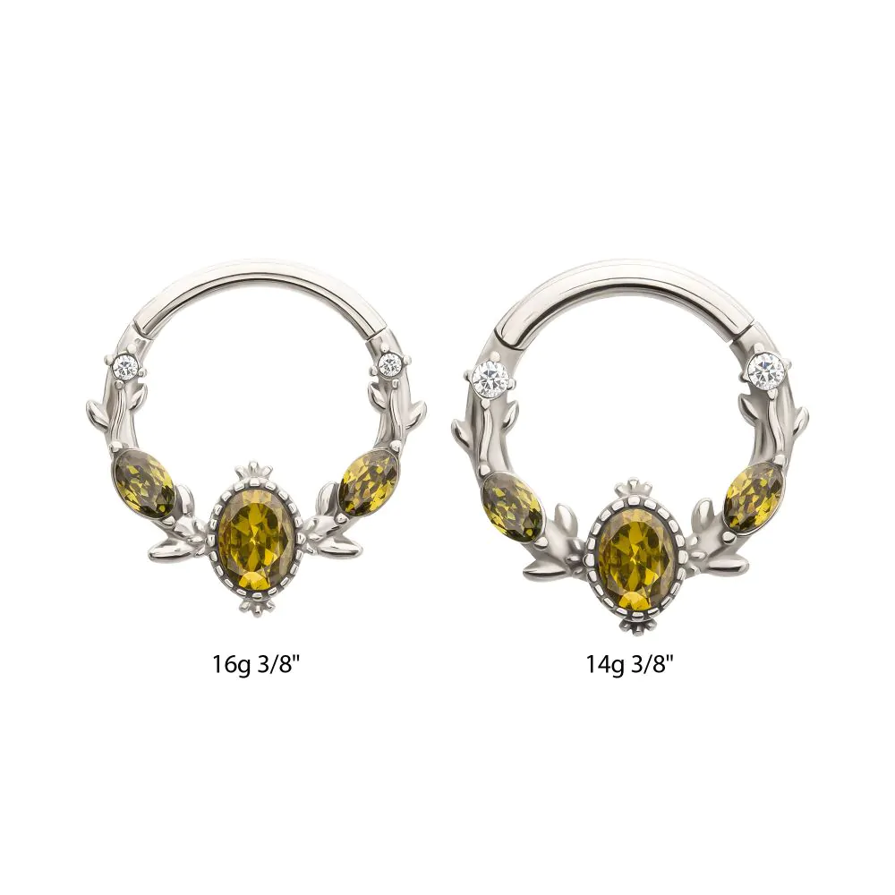 Olive Green CZ Crystal Vined Hinged Segment Clicker Ring - 316L Stainless Steel
