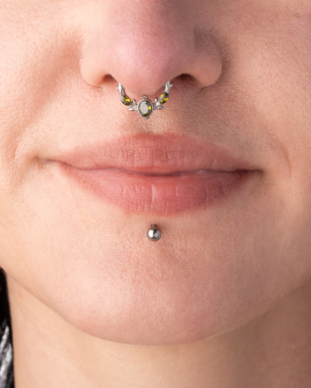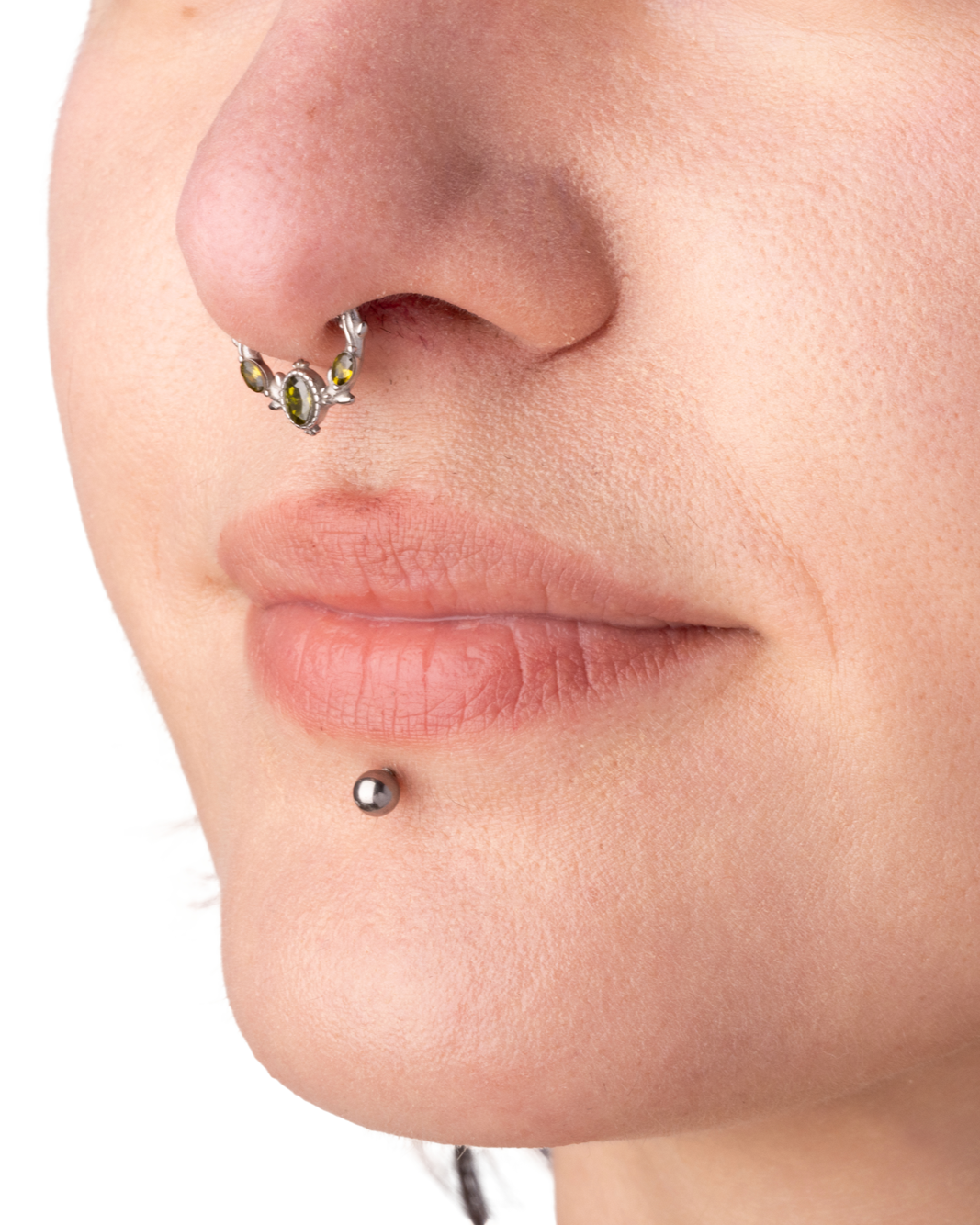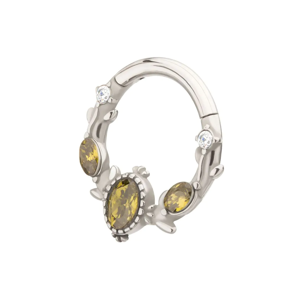 Olive Green CZ Crystal Vined Hinged Segment Clicker Ring - 316L Stainless Steel
