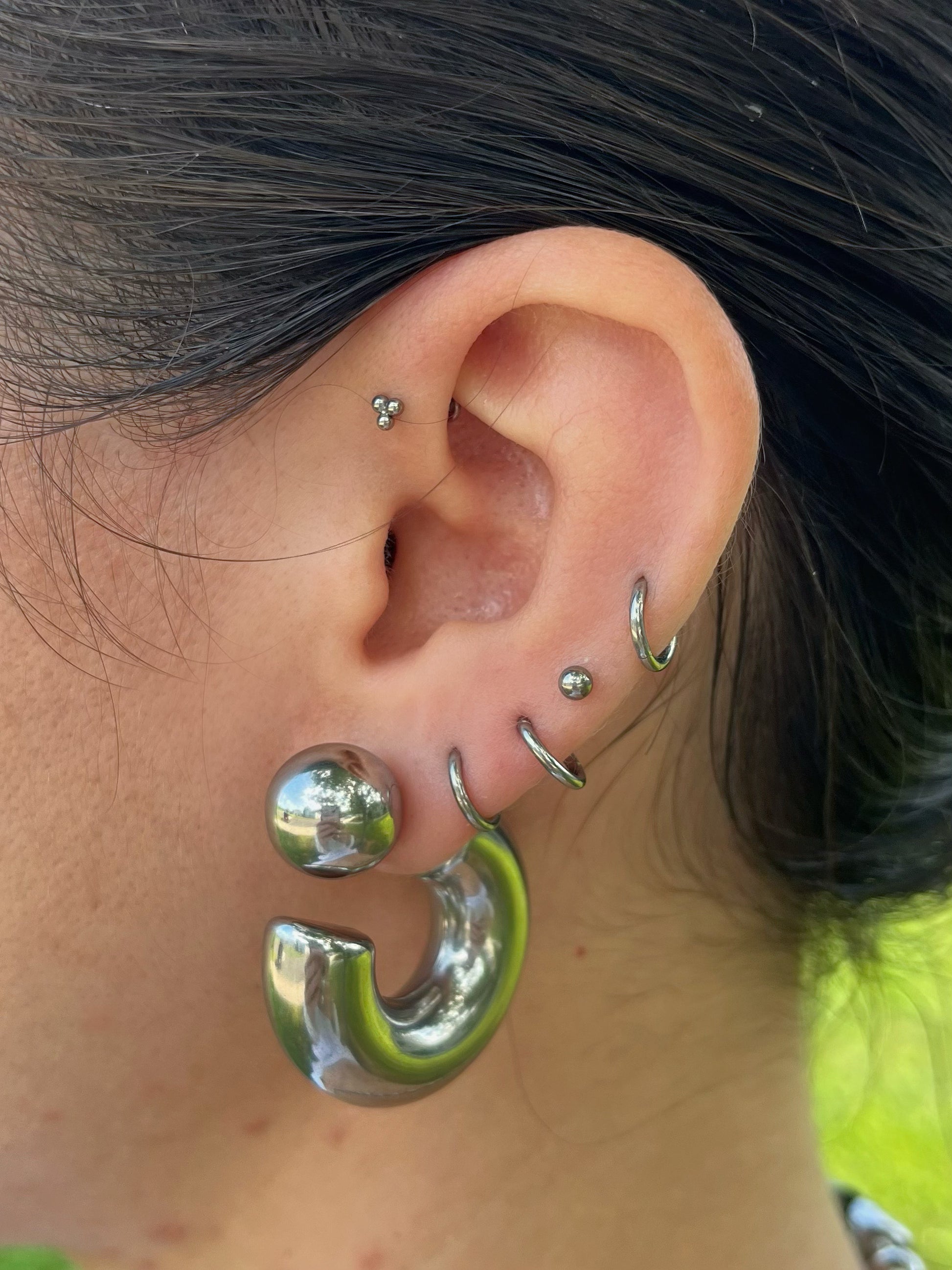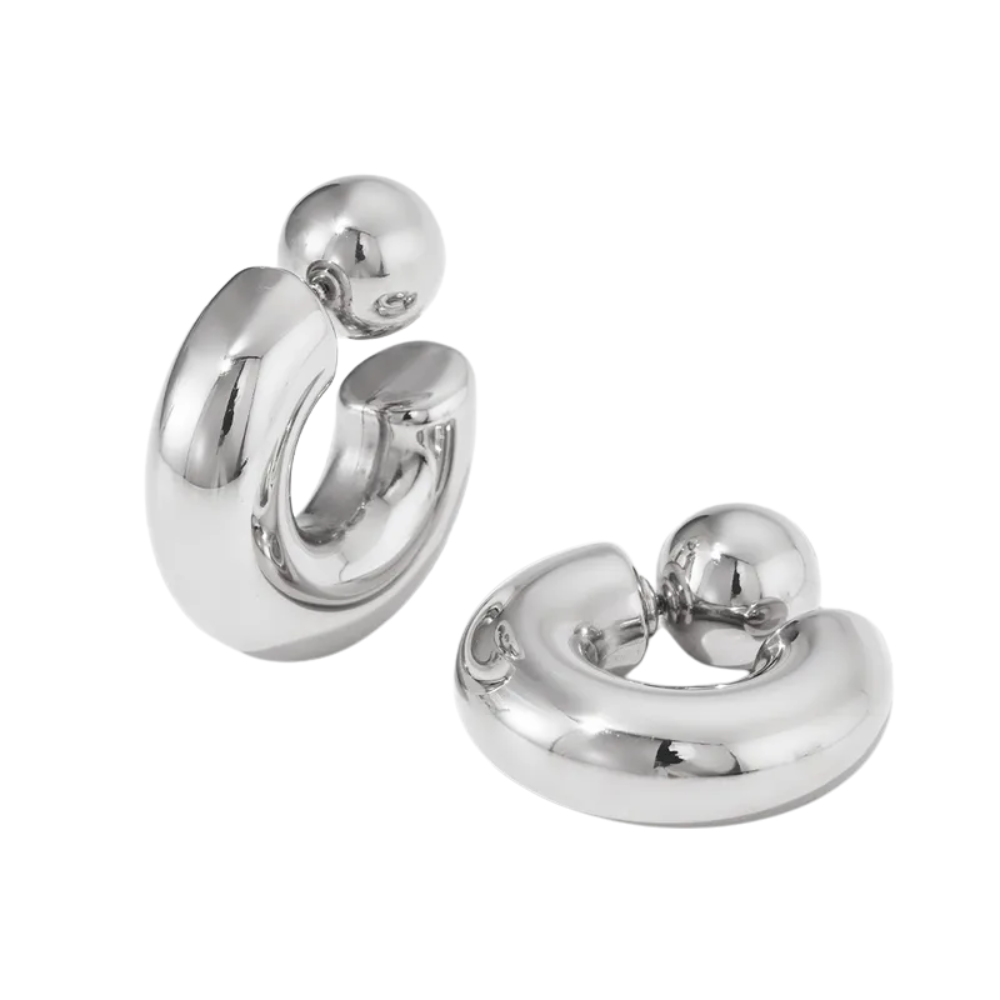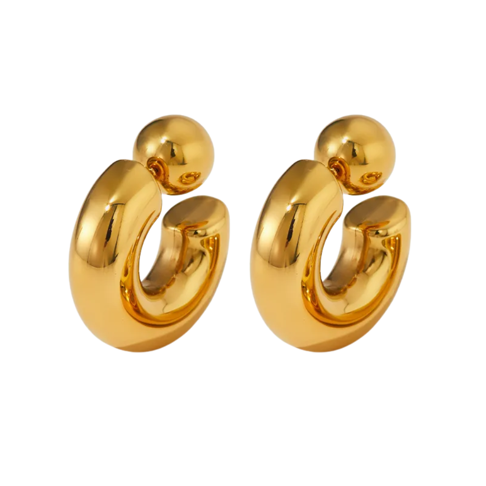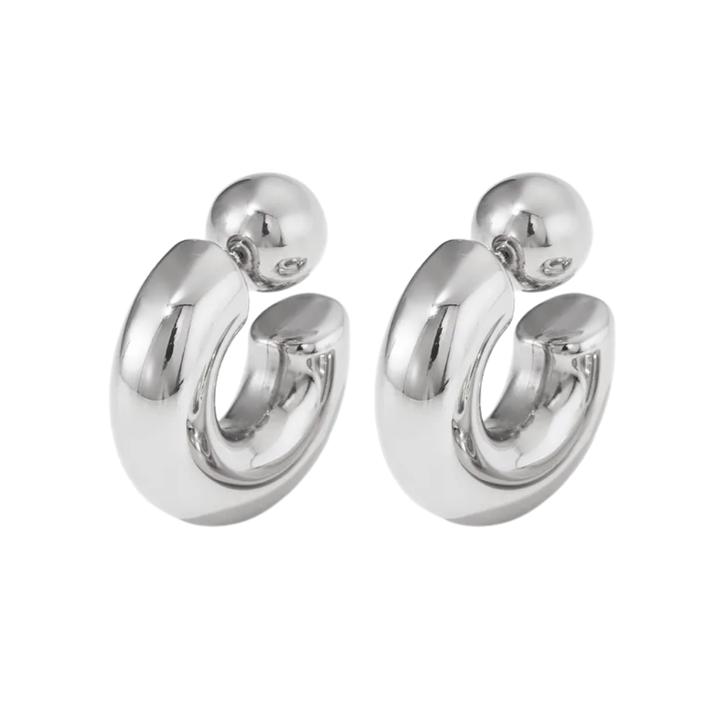 C-Shaped Ball End Hoop Earrings - Pair - Stainless Steel