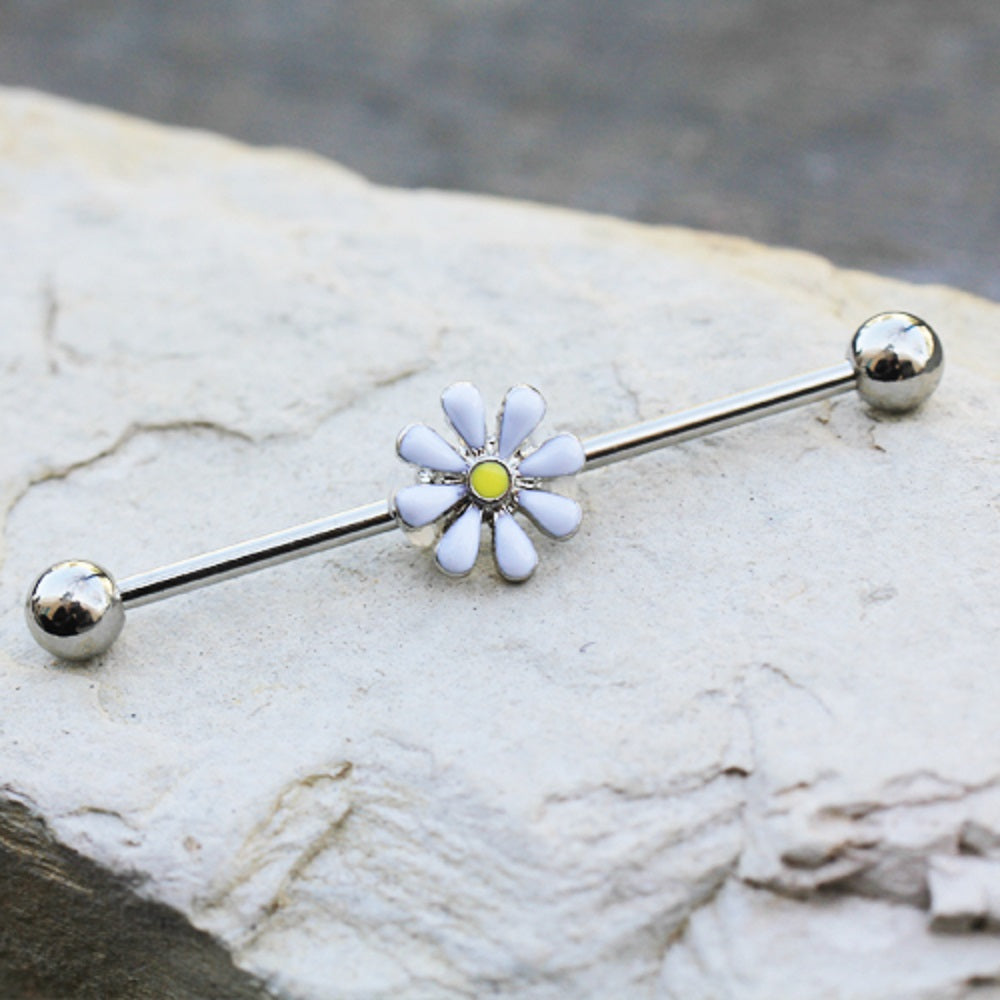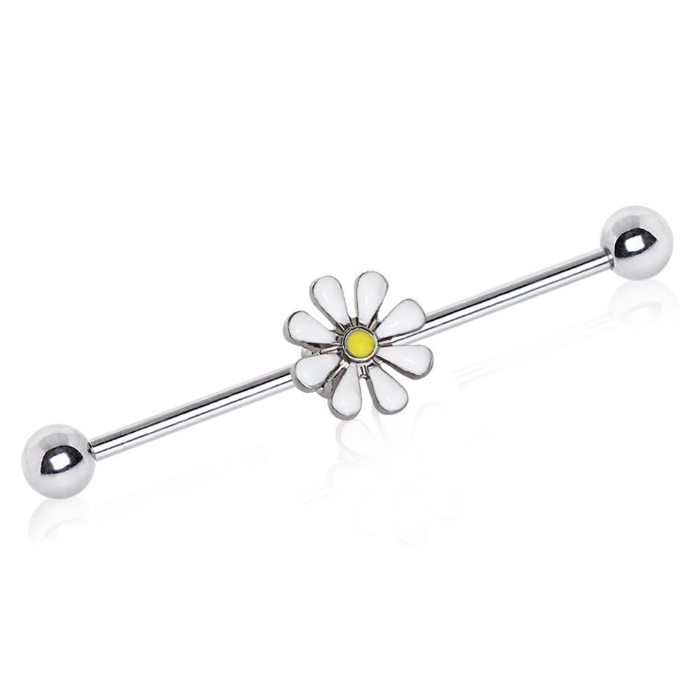 White Daisy Industrial Barbell - 316L Stainless Steel