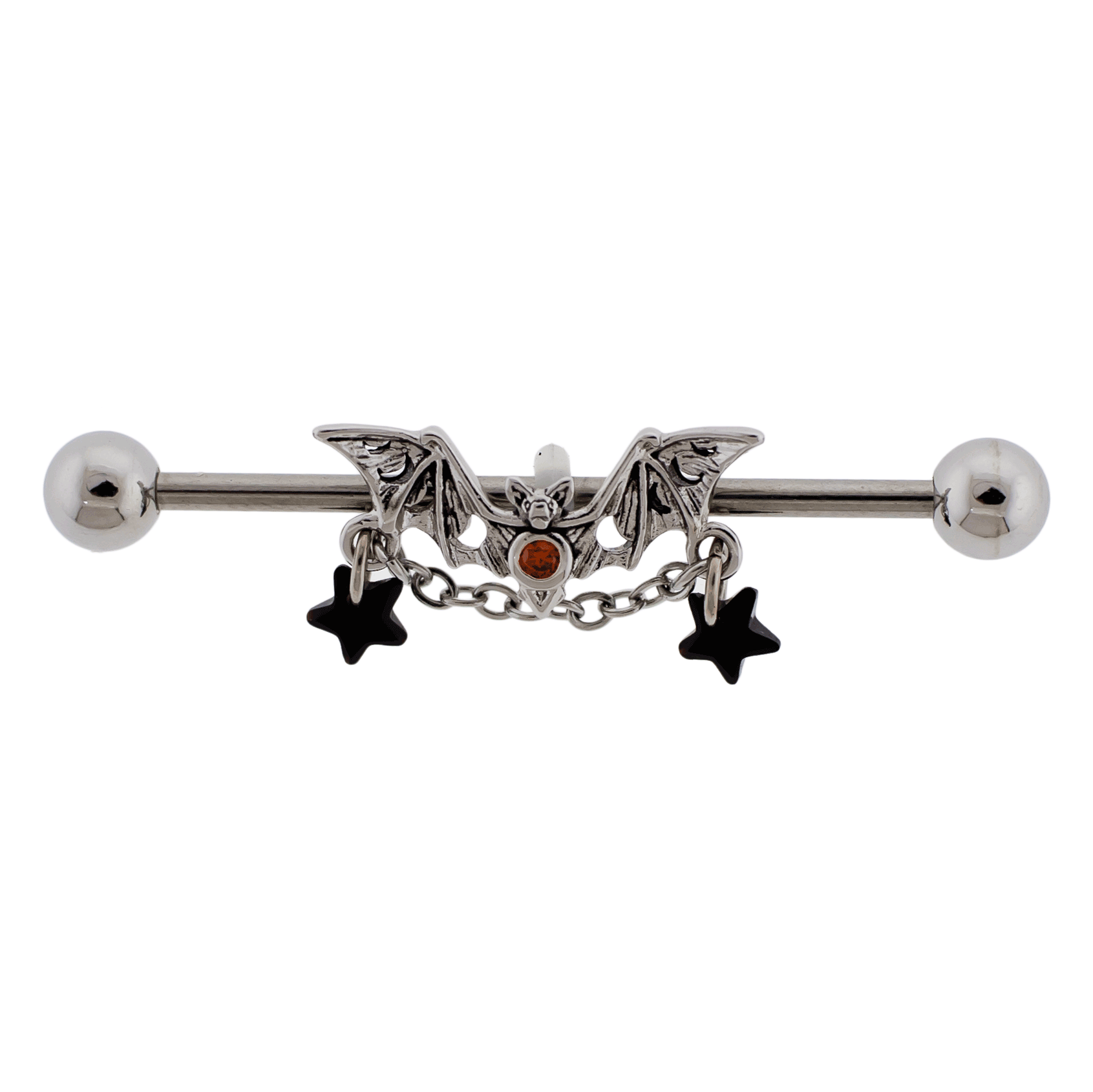 Bat with Dangling Stars and Chain Industrial Barbell - 316L Stainless Steel
